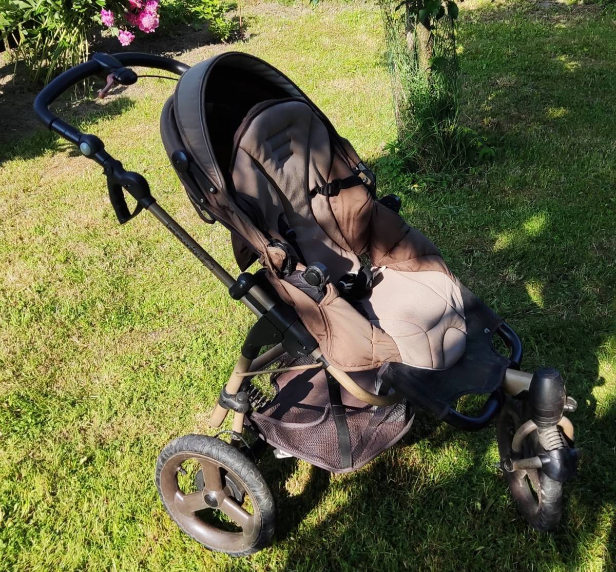 Daruji za odvoz používaný terénní kočárek. Má bohatou výbavu. Vajíčko pro nejmenší dítě - dá se používat jako nosítko a snad jde upnout i do auta (nezkoušeli jsme, nepotřebovali jsme), hlubokou korbu s látkovým krytem - má madla na nošení i sporťák - ten je nejvíce opoužívaný. K tomu je ještě taška na madlo a dvě moskytiéry - černá a bílá. Má tři velká nafukovací kola. Brzda zadních kol funguje, aretace předního kolečka zlobí. Je velice skladný. Snadno se skládá a před složením se ani nemusí sundávat sporťák - složí se i tak. Přední kolečko se dá snadno sundat a po transportu zase nasadit. Sem se dají dát jen čtyři fotky, ale případně mohu poslat další na mail. Používali jsme pouze sporťák, ostatní věci, které byly k němu jsme pouze skladovali zakryté na suchém místě. Vnitřky budou potřebovat vyčistit. My jsme používali tento kočárek pro cesty s vnukem do přírody, do lesa. Na chatu, chalupu, na zahradu ideální. Převzetí v Modřanech.