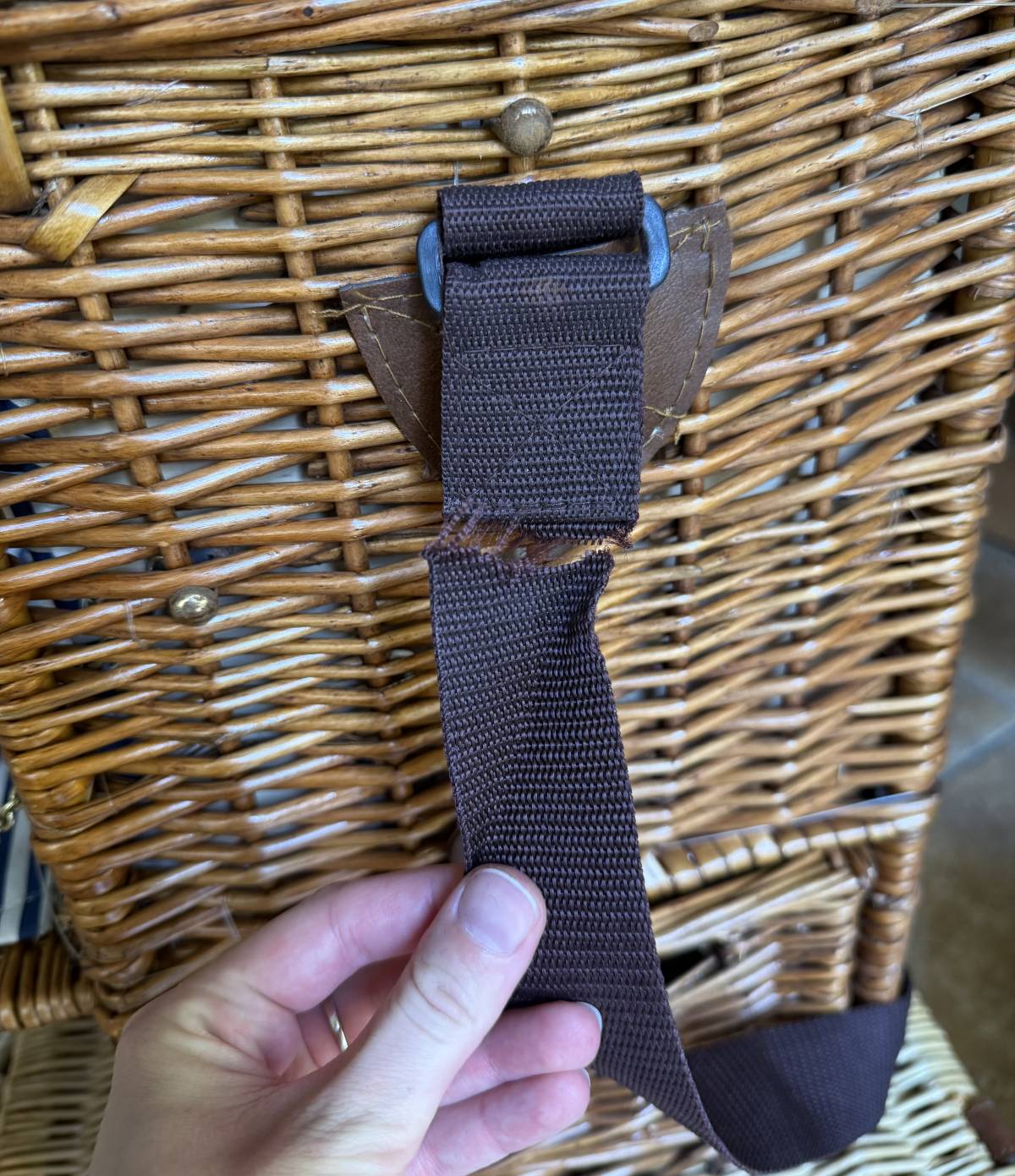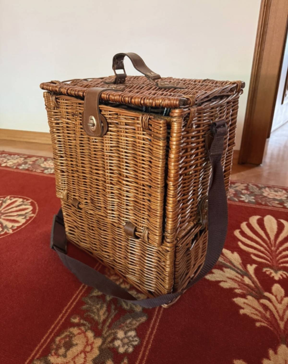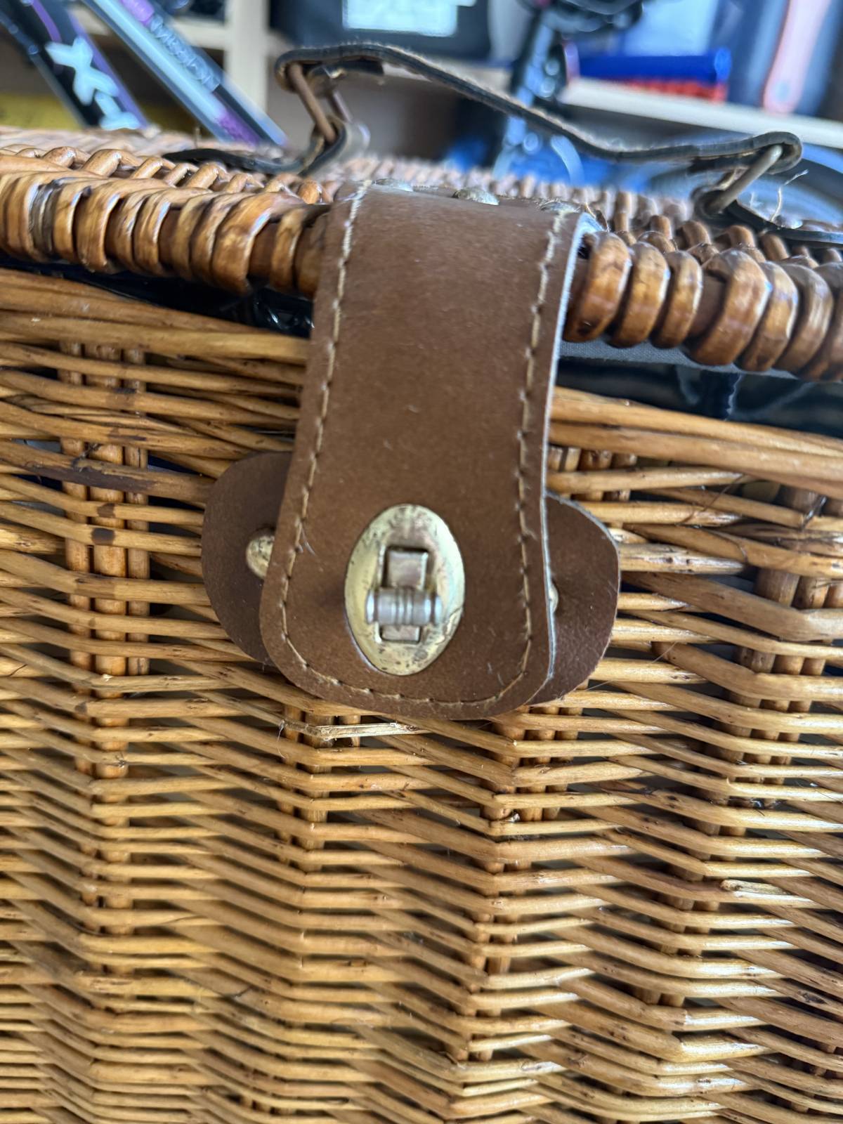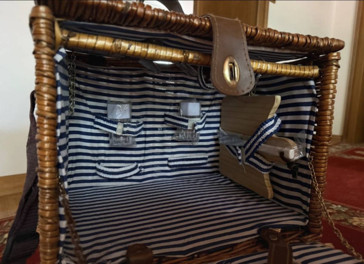 Daruji za odvoz piknikový koš. Nebyl nikdy používaný, ale bohužel se na něm podepsal zub času. Poutko po straně je bohužel utržené, musela jsem jej celé odtrhnout. Na zámečcích je rez, ale nějakým přípravkem by snad šlo odstranit.