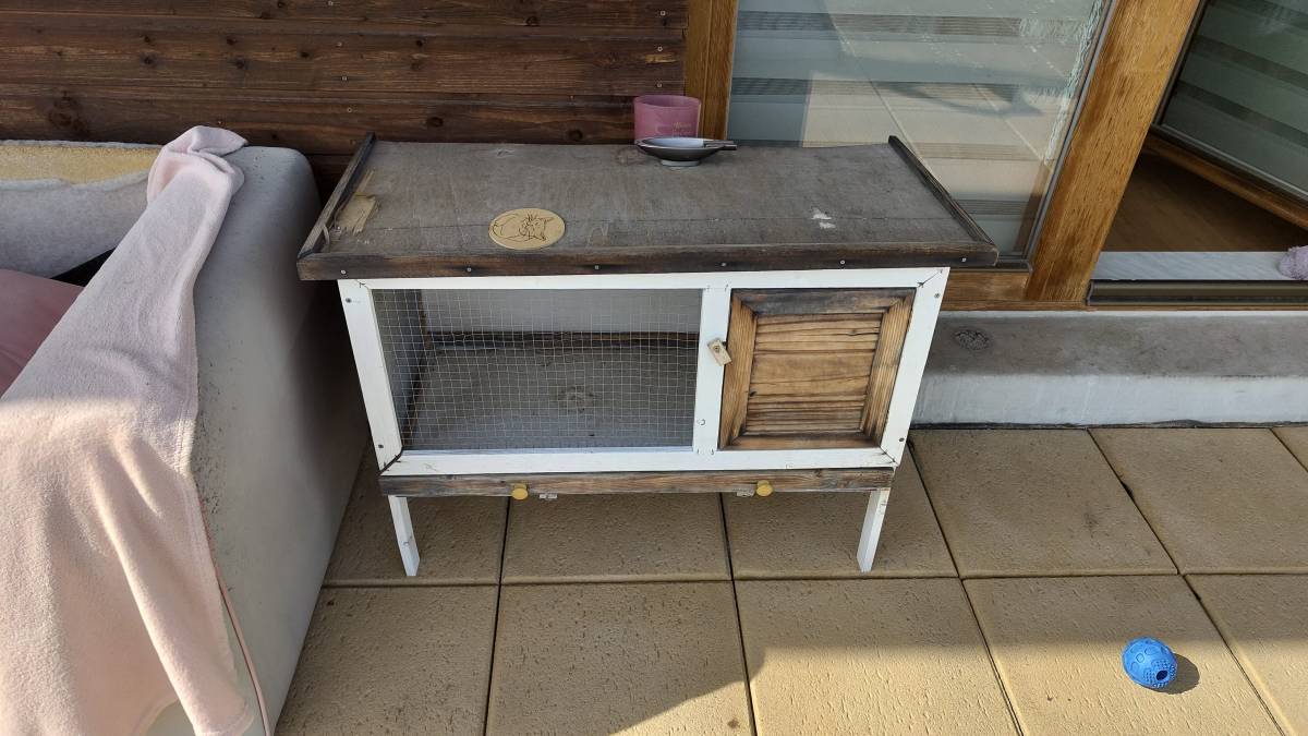 Stála cca dva roky venku, takže by ocenila vyčistit a natříř, ale měla by snad ještě nějakému chlupáčovi posloužit. :)