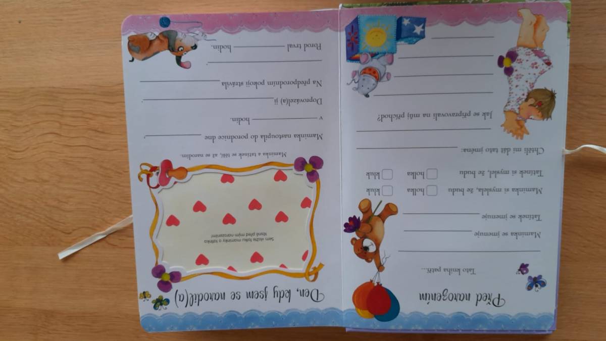 Daruji za odvoz. Formát A4, je tam 28 předpřipravených stránek v pevných deskách, kde si můžete vyplnit, jak Vaše mimi roste atd - viz ukázkové stránky.