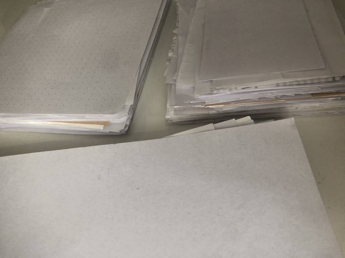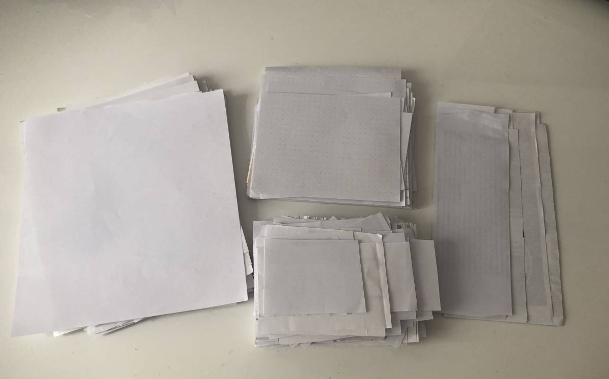 Daruji za odvoz papíry z 1 strany popsané na poznámky atd. Největší rozměr je cca A5, pak cca A6, cca DL a poté nejvyšší hromádka menších.