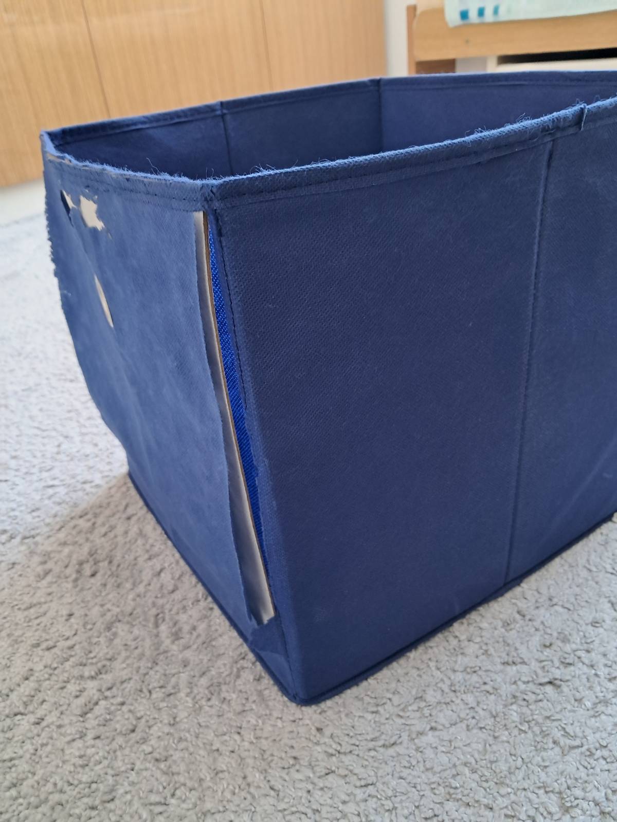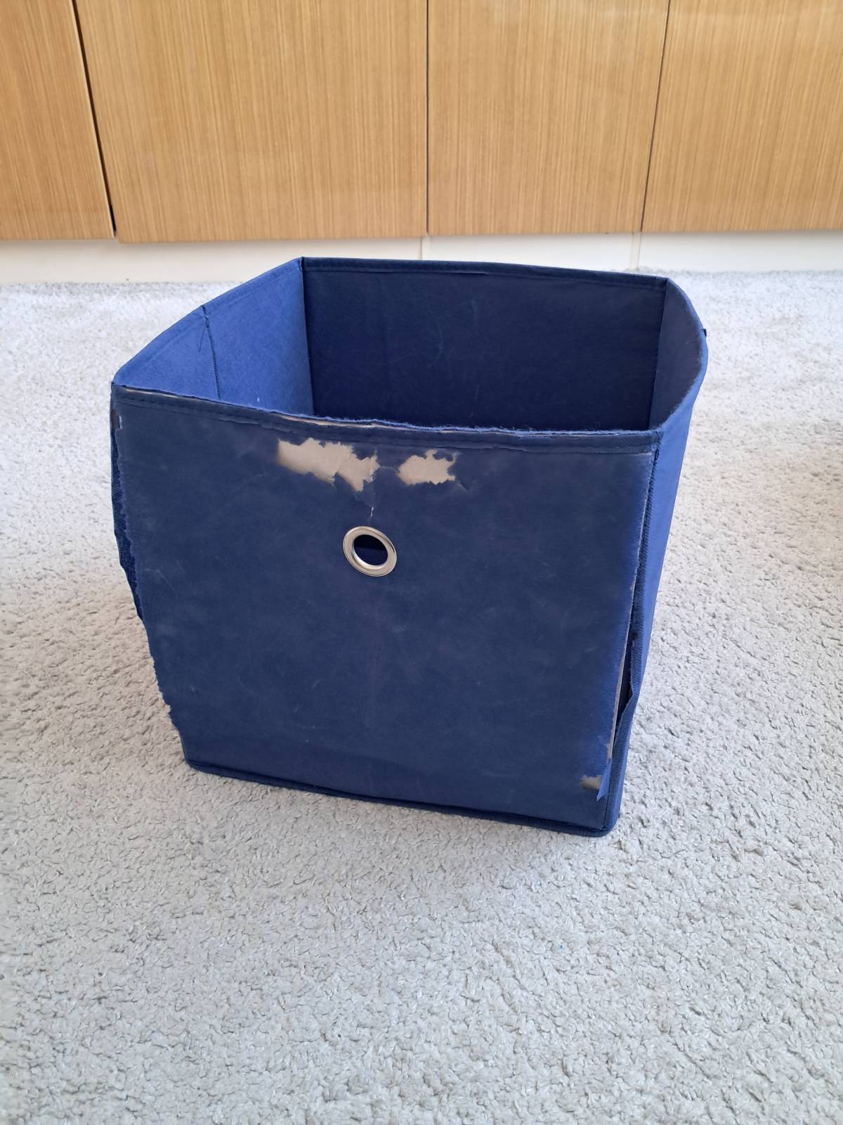 Daruji za odvoz úložný box modrý 30x30 cm, z jedné strany se už rozpadá, ale když by se box otočil z jiné strany, tak ty jsou bez poškození.