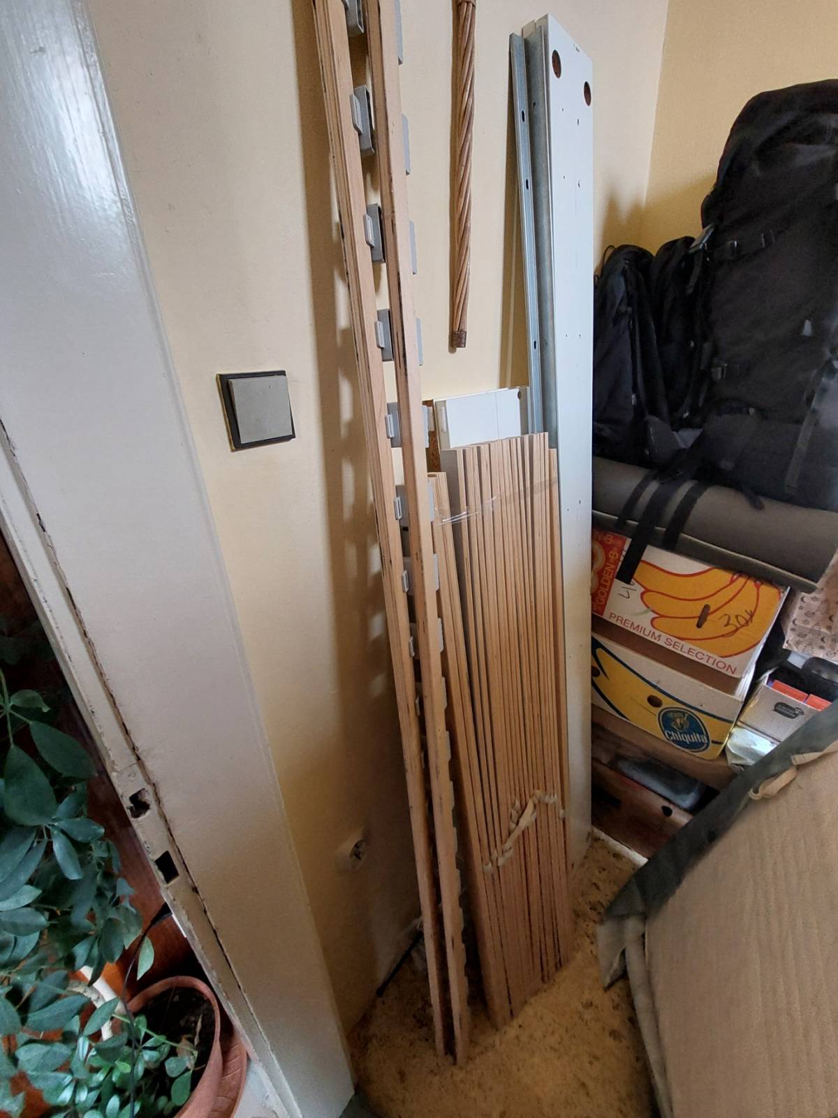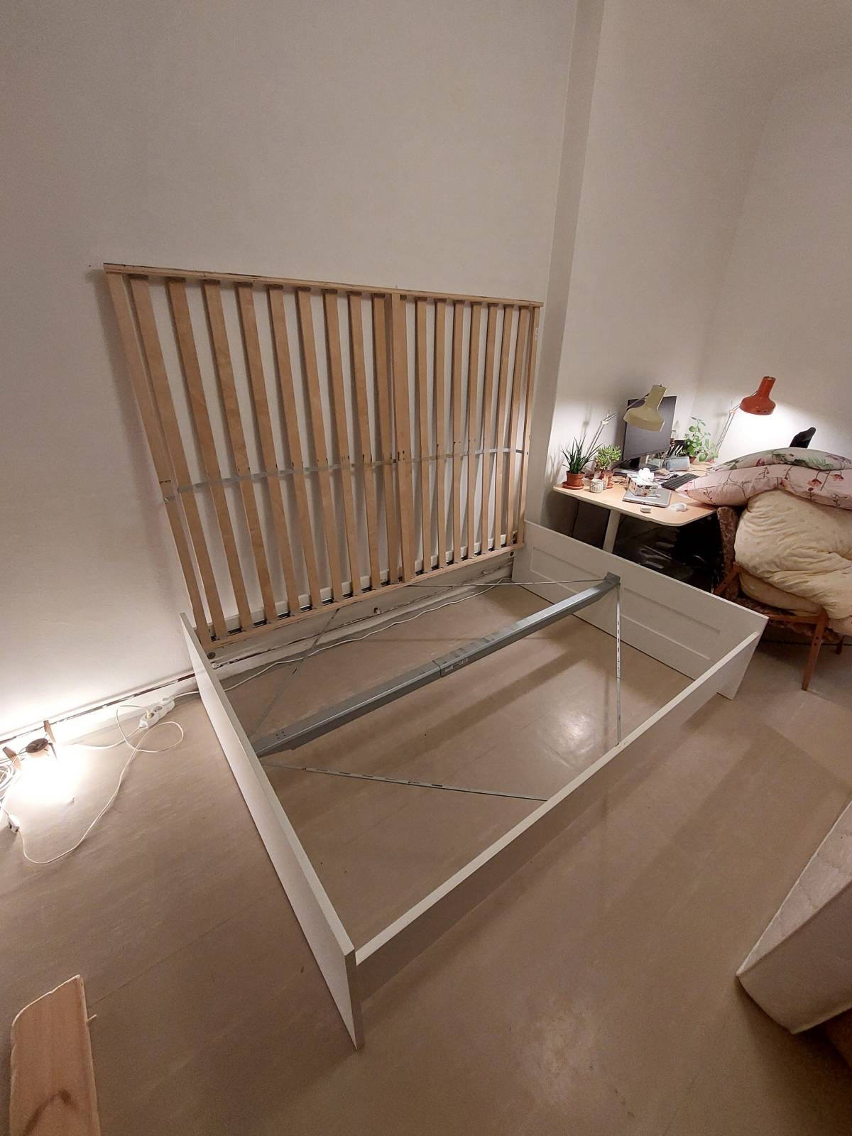 Postel IKEA 140x200 cm. Jedno čelo je nalomené, viz foto, ale stojí. Bez matrace.