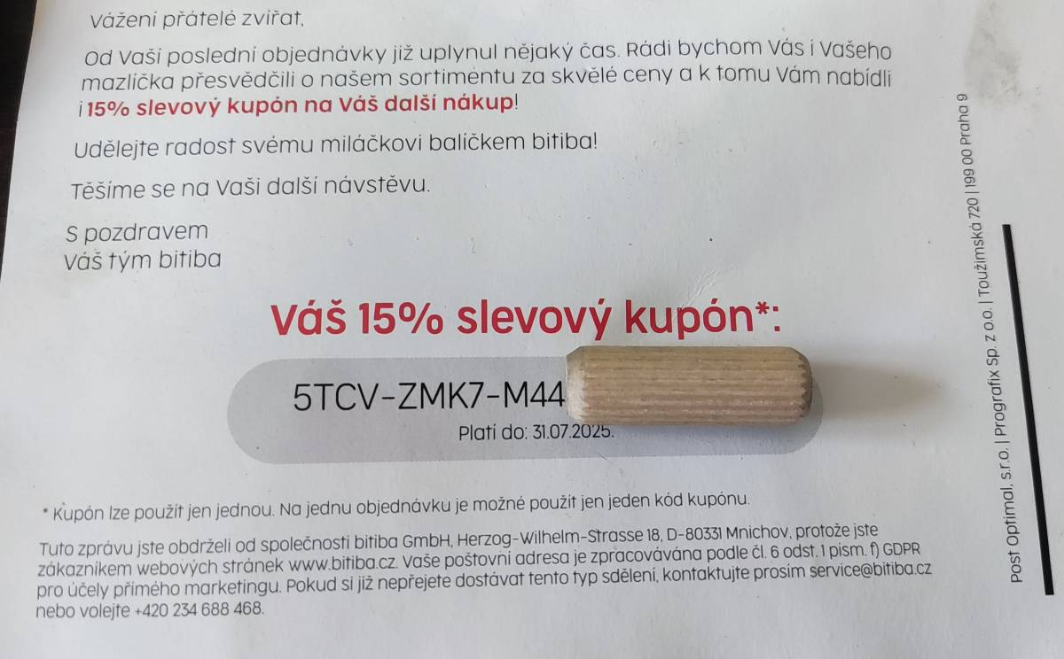 Na požádání sdělím slevový kód na 15% slevu. Mám nakoupeno, nevyužiji.