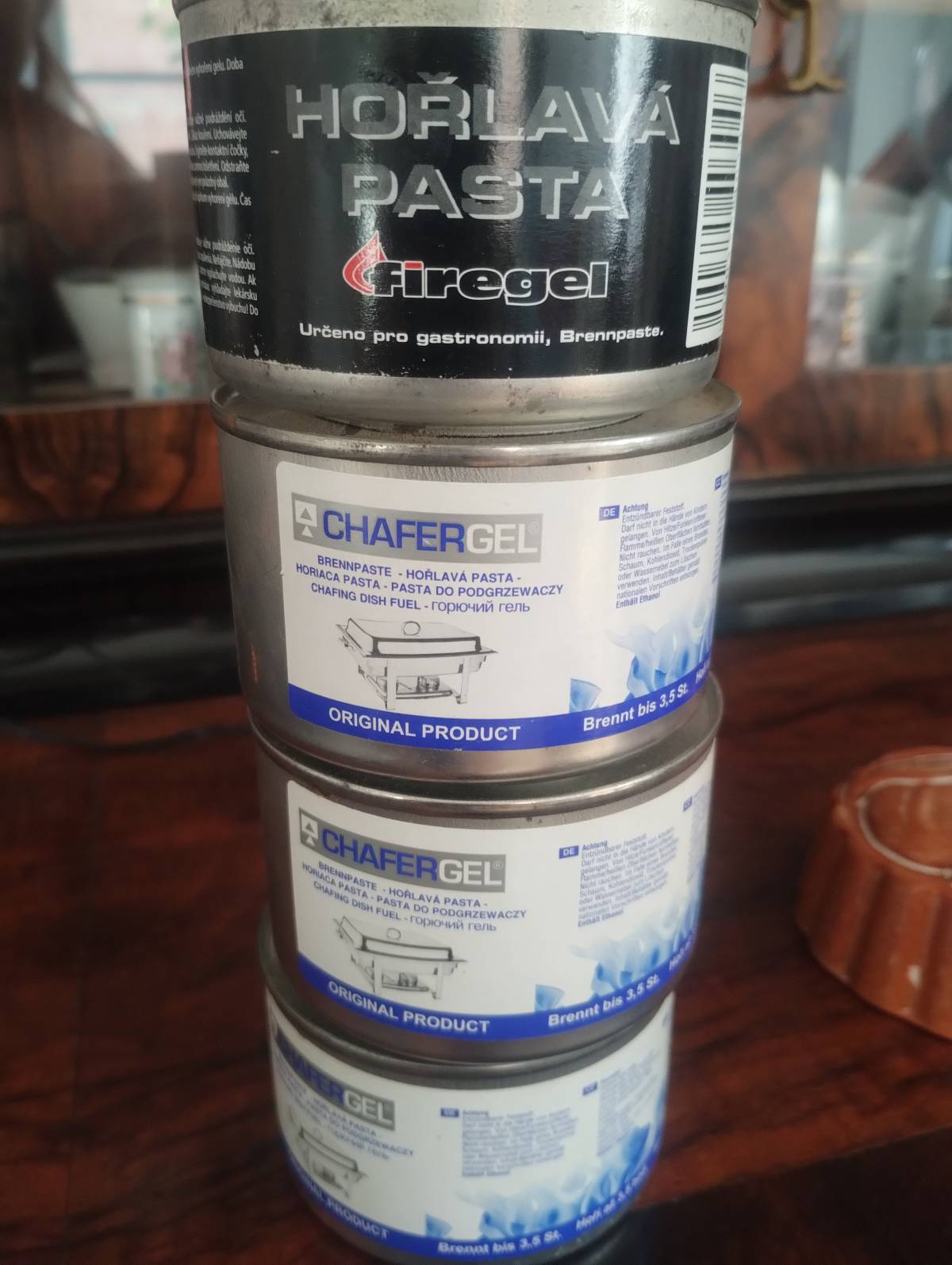 Daruji za odvoz čtyři 5 let staré Chafer gely (náplň do hořáku do chafingu). Praha 4 Spořilov