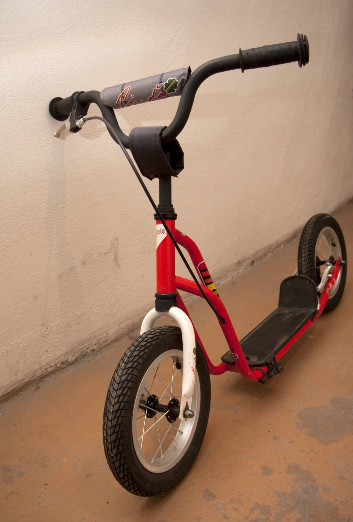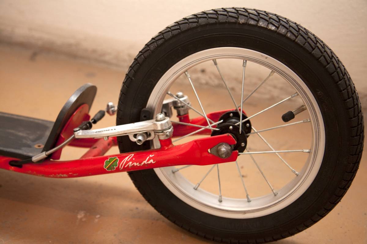 Daruji za odvoz dětskou koloběžku Čtyřlístek. Pro děti cca 3-5 let. Brzda brzdí, ale časem bude potřebovat dotáhnout.