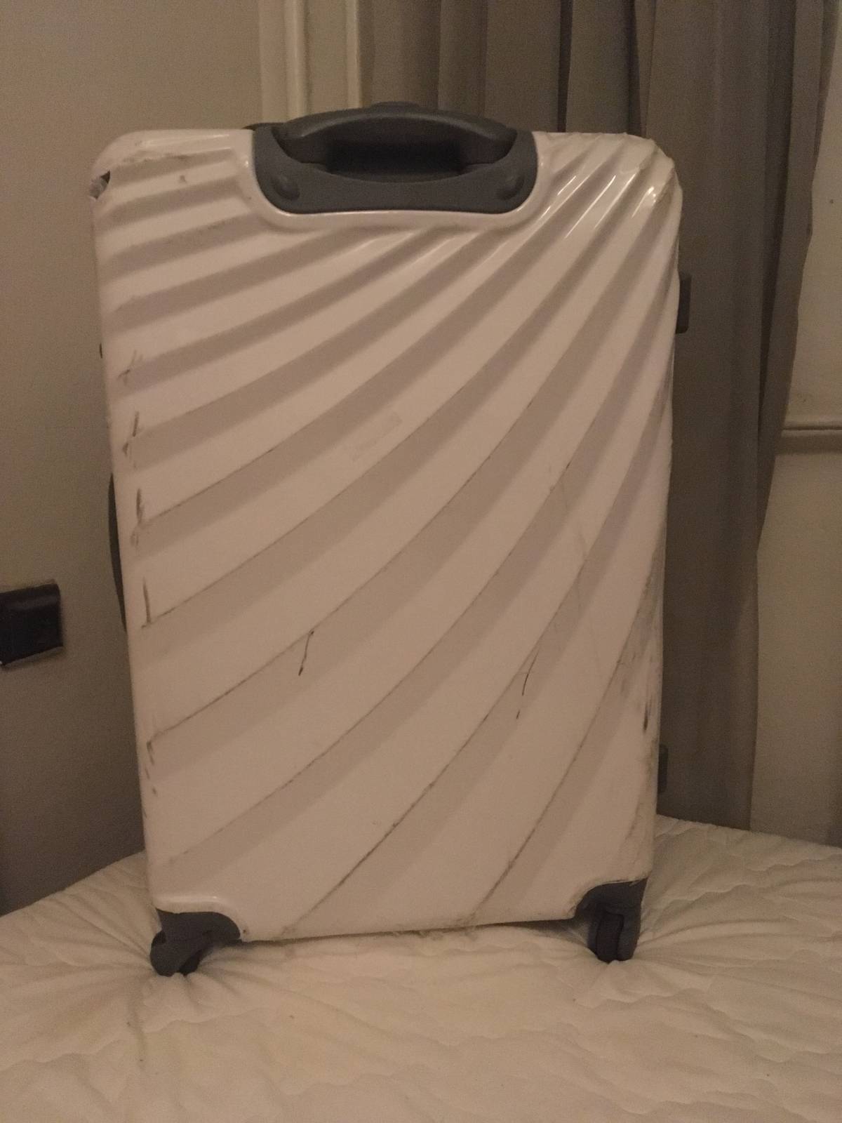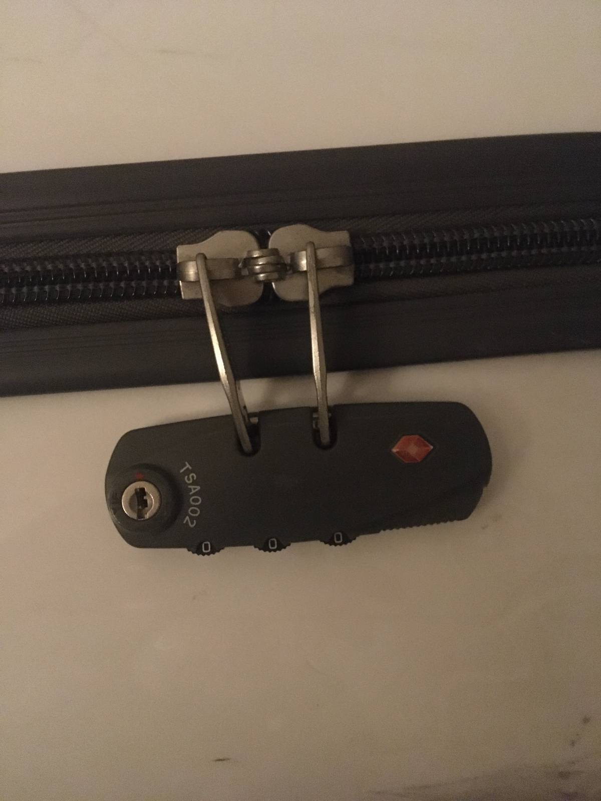 Má už lecos za sebou, hlavní vada je díra v rohu. Má i zámek na zip, bohužel už nemám klíč, takže výchozí kód nejde změnit. Ale samozřejmě je normálně použitelný se zámkem i bez.