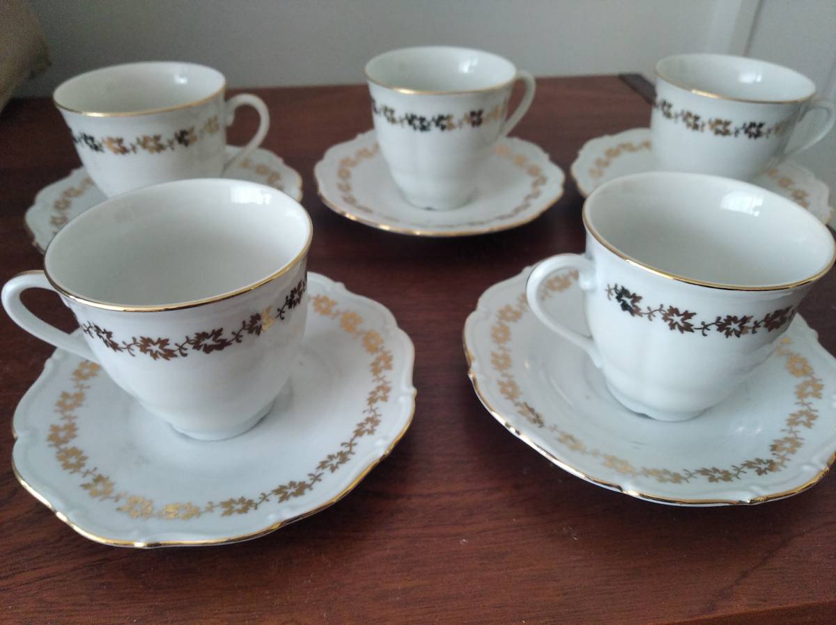 Daruji za odvoz 5 hrnečků s talířky zdobené zlatem. Hrníček vysoký cca 7 cm. Předání Jižní Město - Háje.