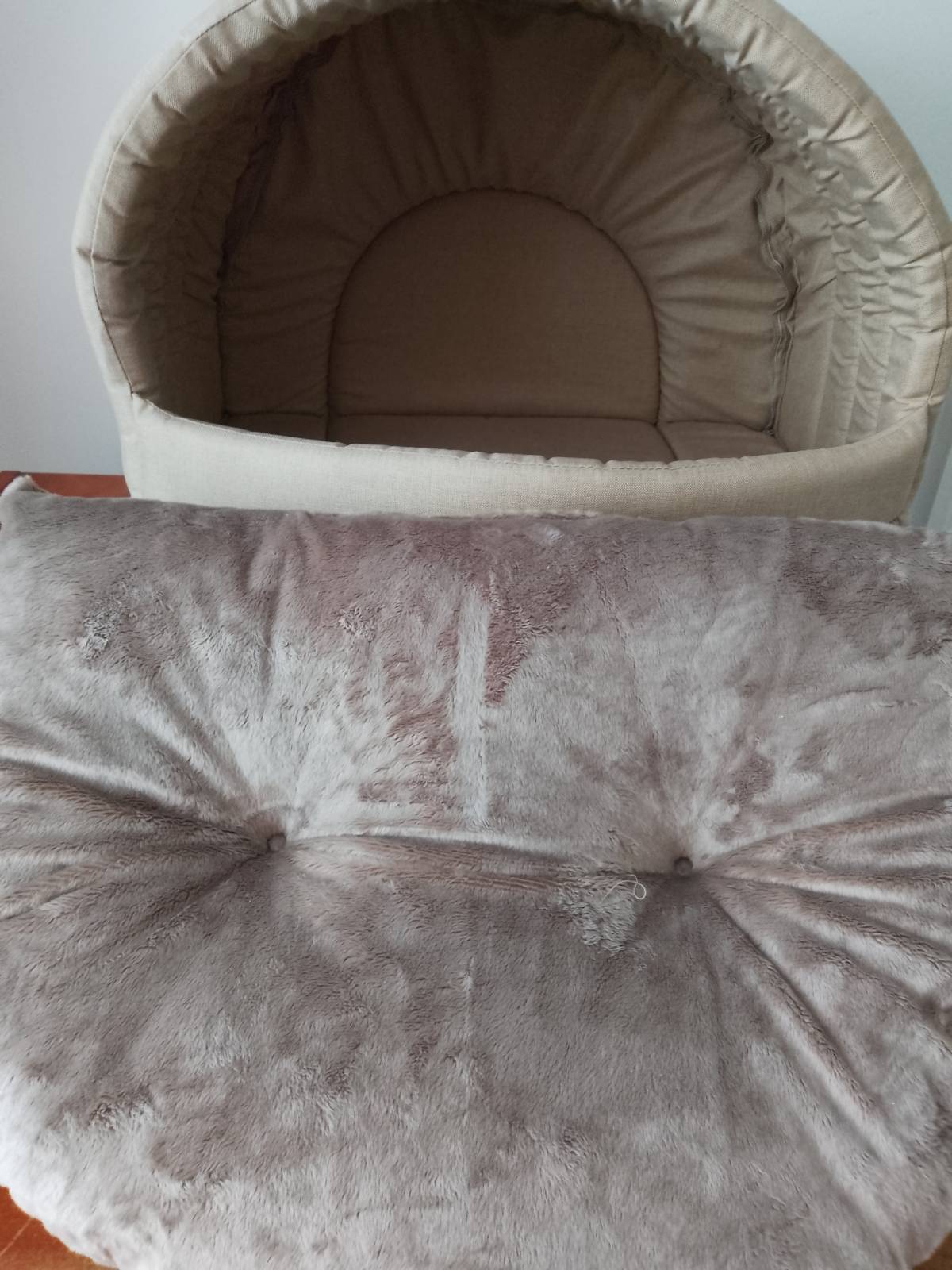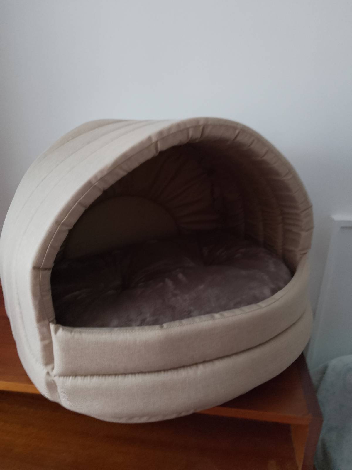 Daruji za odvoz nový vypolstrovaný pelíšek - boudičku pro menšího pejska s vyndavacím polštářem. Rozměry vnitřní: š 50 x v 30 x hl. 42 cm, rozměry vnější: š 60 x v 44 cm. Předání Jižní Město - Háje.