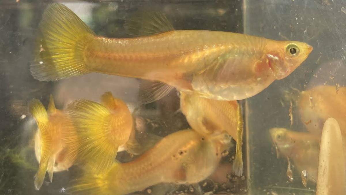 Daruji za odvoz za odvoz mládež Yellow guppy celkem cca 15 ks. Foto ilustrační, jak vypadá samec a samice. Pouze osobní předání poblíž Flory.