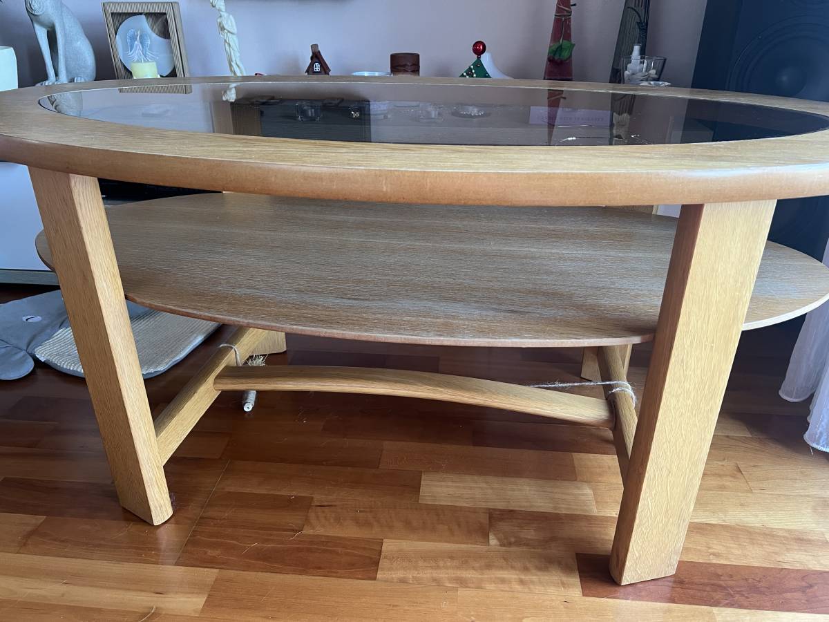 Daruji za odvoz dřevěný konferenční stolek, 120x65x53, bez skla, nohy jsou masiv, horní deska MDF+dýha.