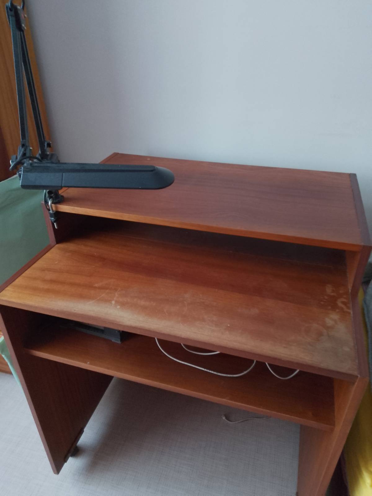 Daruji za odvoz doma vyrobený počítačový stůl, kam se vejde počítač, klávesnice i tiskárna. Pracovní plocha je trochu odřená. Stolek je na kolečkách. Rozměry: výška 99 cm, hloubka 70 cm a šířka 84 cm. Možno i s lampičkou. Převzetí Jižní Město - Háje.