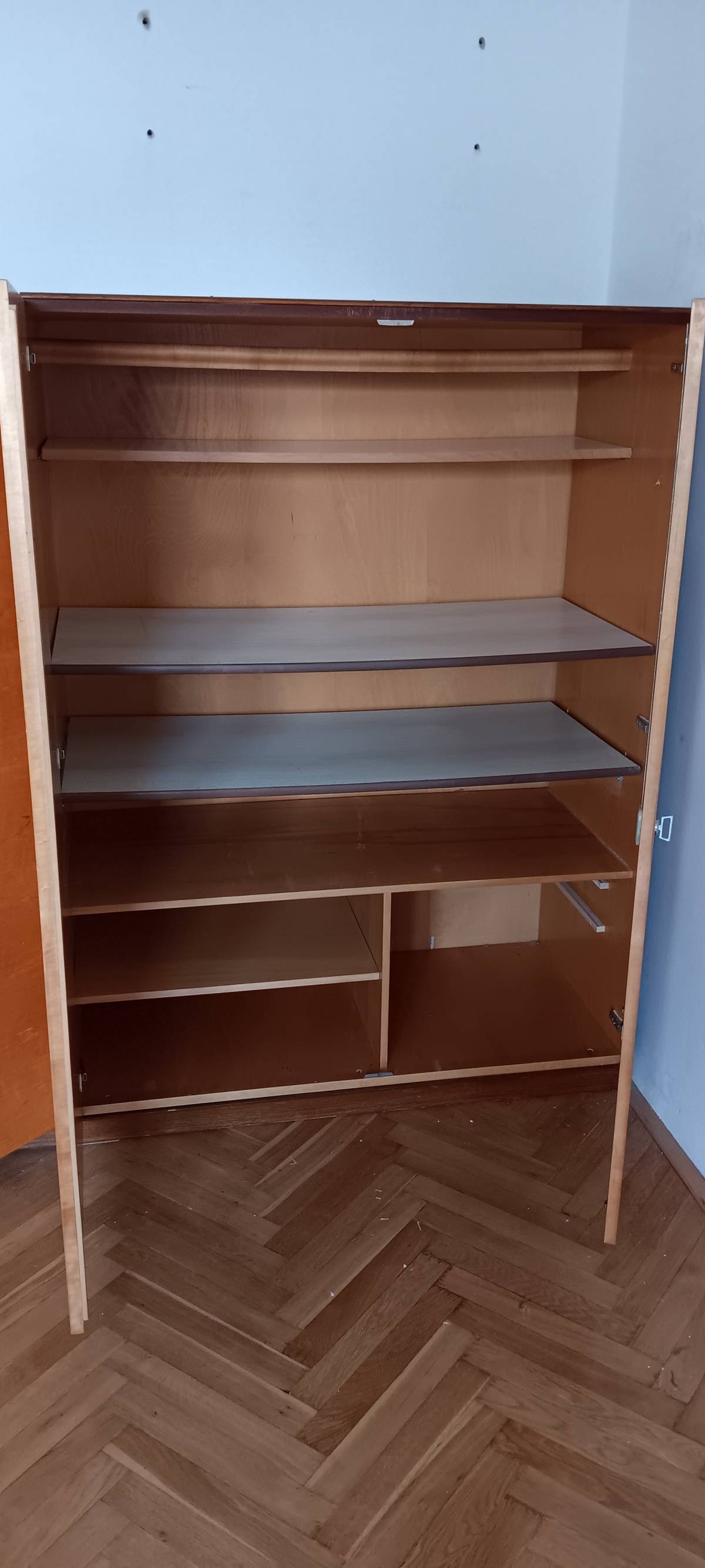 Daruji za odvoz dvě dřevěné skříně, k té napravo jsou ještě 2 nízké šuplíky (na fotce chybí). Odvoz z Brno-střed.