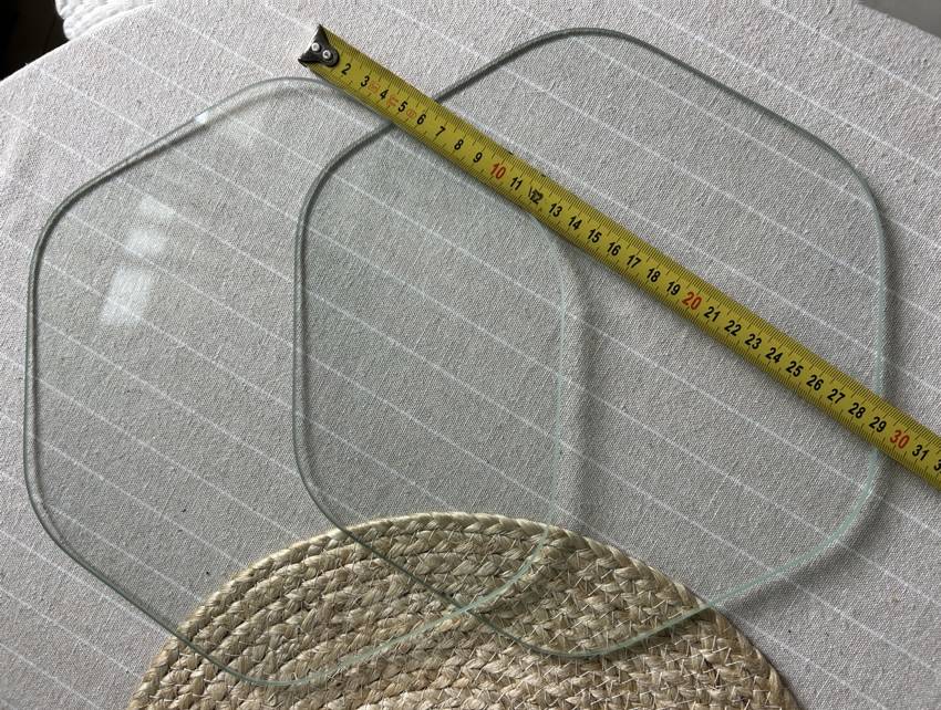 Daruji za odvoz 2 hexagonová sklíčka na okrajích zaoblená, byla součástí poliček - ideální jako ozdobný talíř nebo pro kreativní projekty, míry viz foto