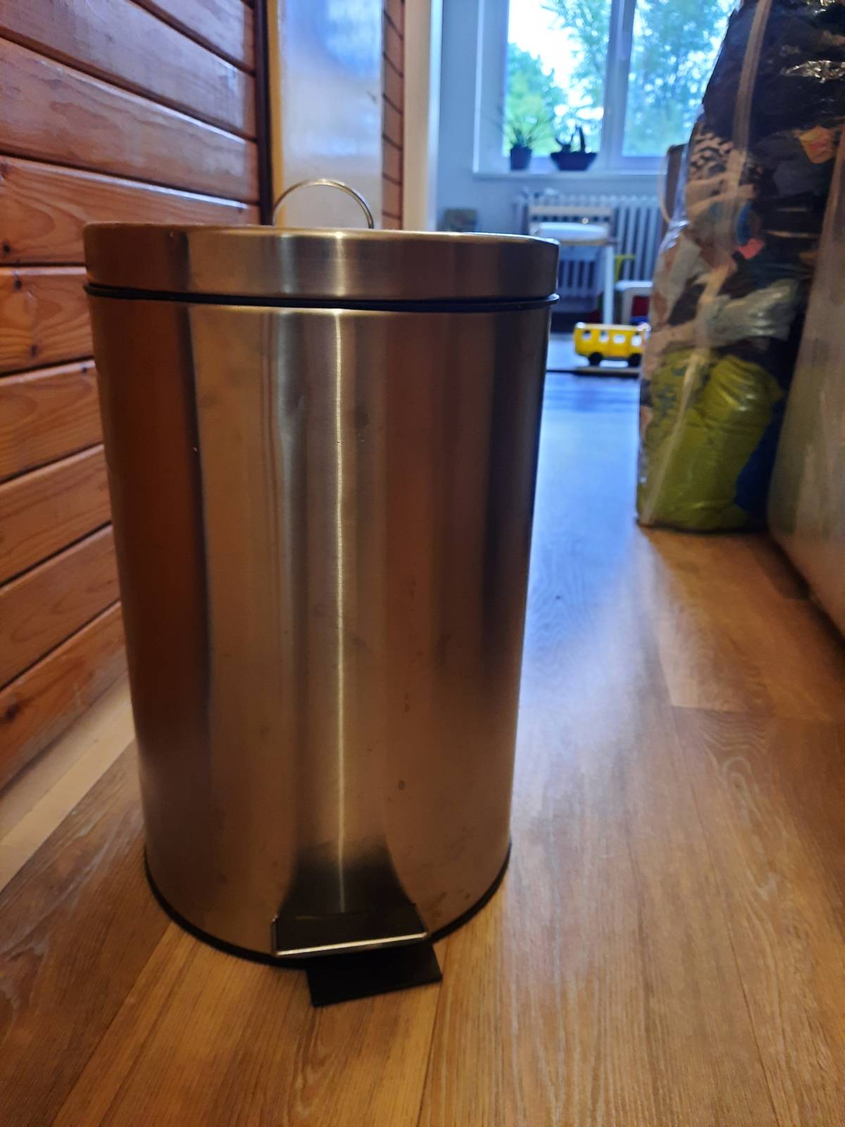 Daruji za odvoz kovový odpadkový koš. Objem 12 litrů, víko trochu promáčklé.