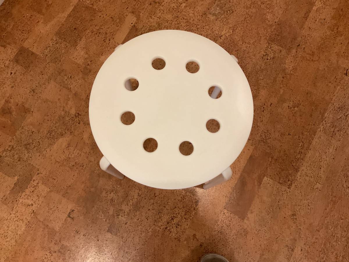 Daruji za odvoz sesličku do koupelny IKEA. Nohy jsou kovové, sedák plastový. Výška 44,5 cm, průměr 31 cm.