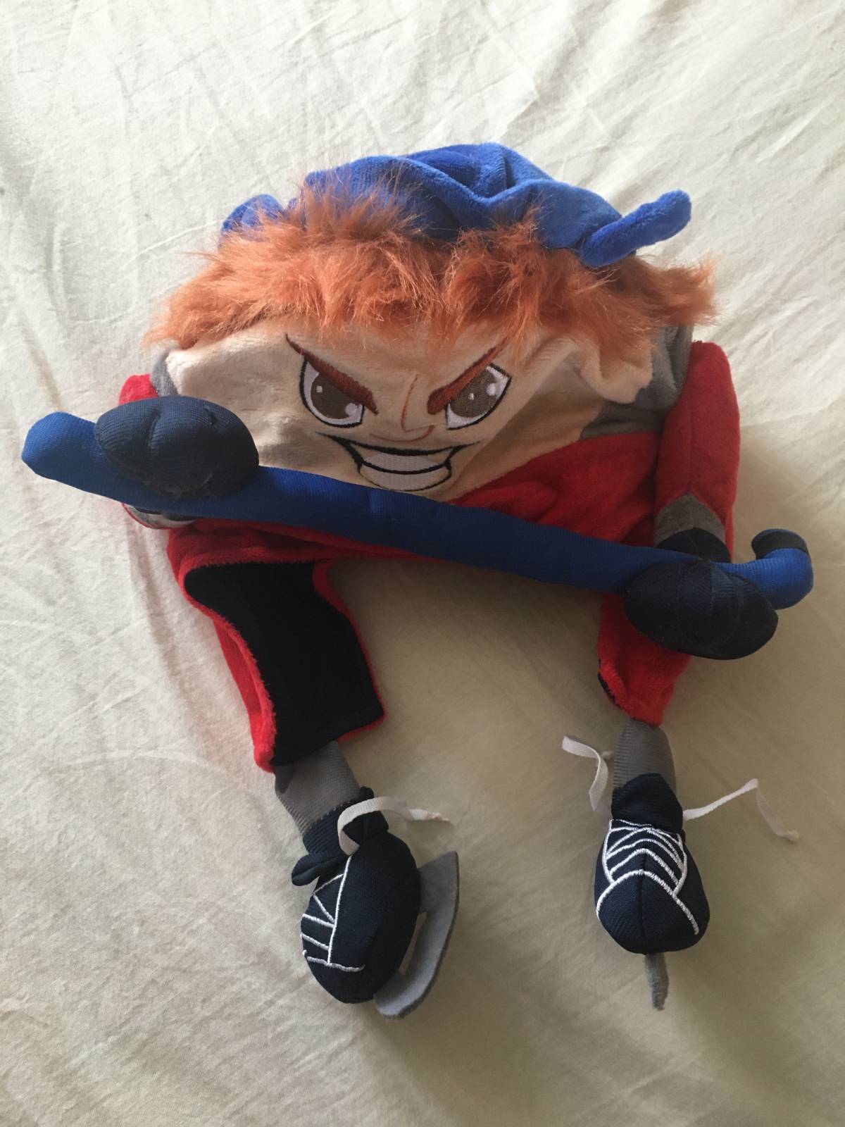 Využil by někdo “úchvatnou” čepici ve tvaru hokejisty? Vejde se na dospělou hlavu (vzadu guma).