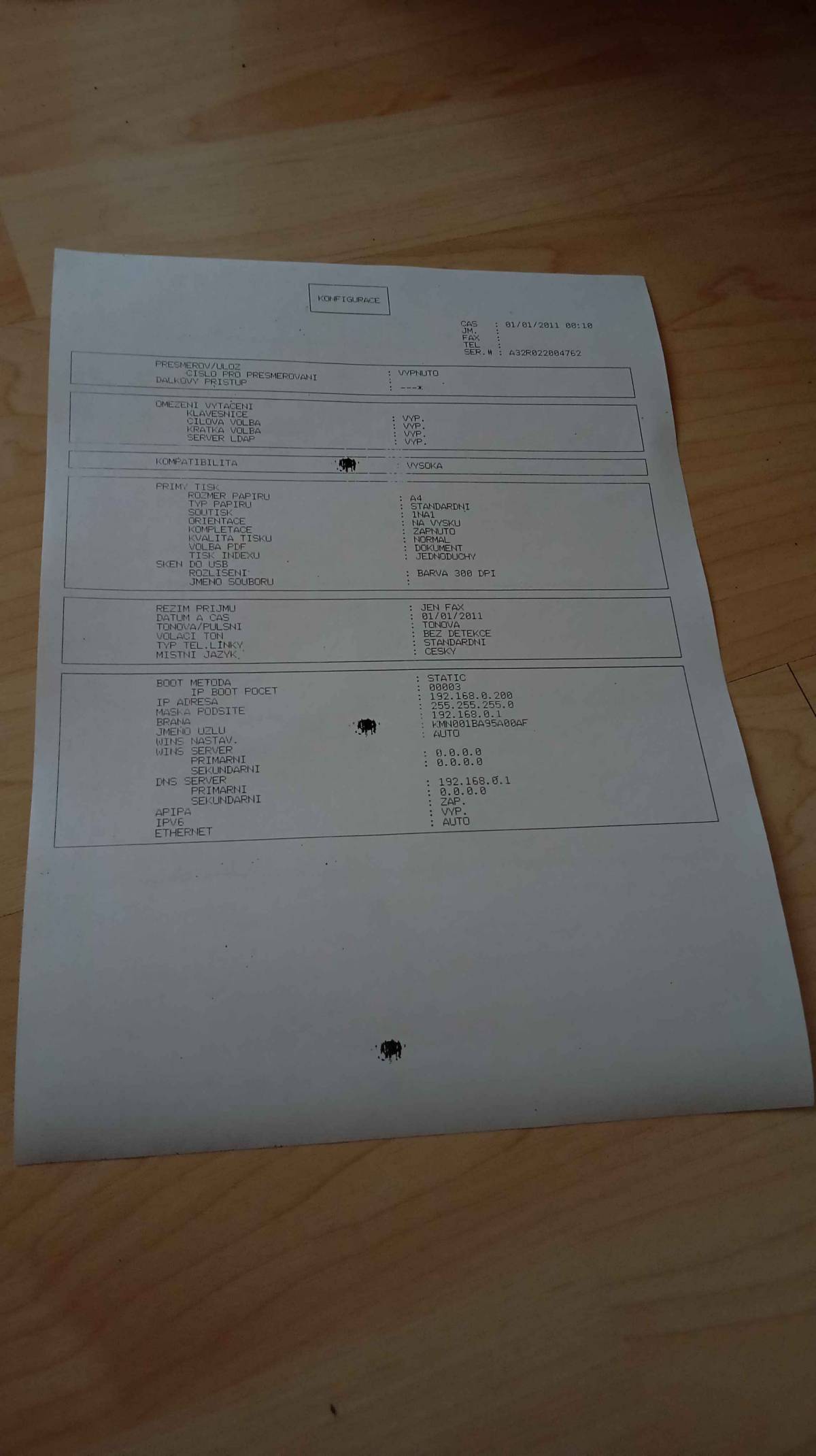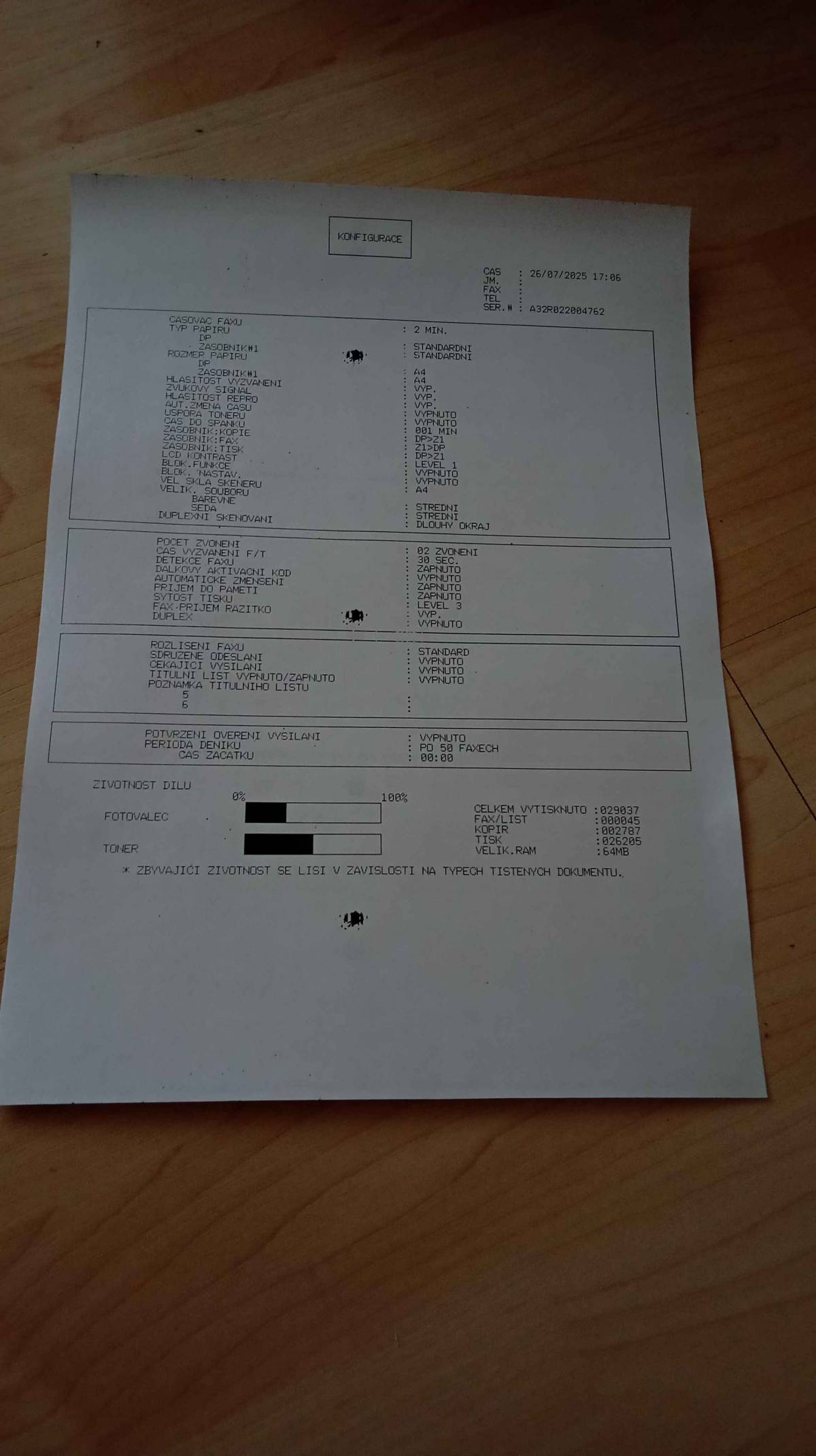 Samotná tiskárna je v pořádku a plně funkční. Provedl jsem vyčištění a self testy. Vše OK.
