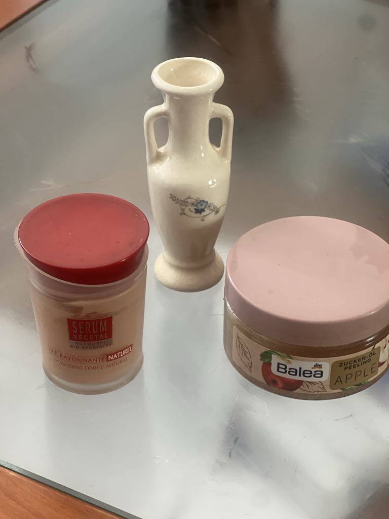 Daruji za odvoz hezkou nepoškozenou vázičku, peelingový jablečný krém - zcela plný, použitý jednou, 100 ml, a make-up, bio, Yves Rocher, chvili používán, ted využívám jiný.