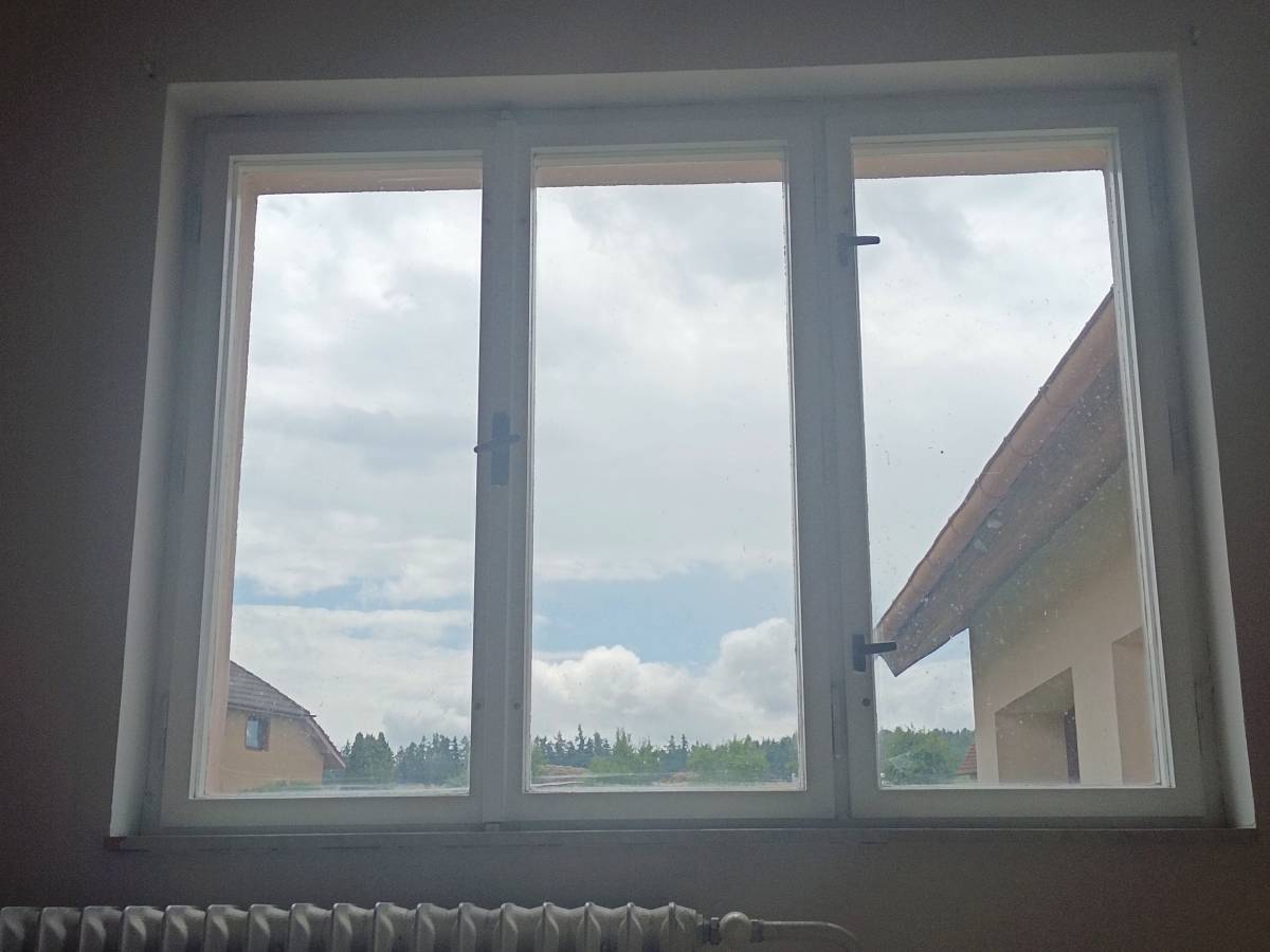 Daruji za odvoz 2 kusy dřevěných oken s rámem, 180x130 cm, bílá, 3dílná, 2sklo.