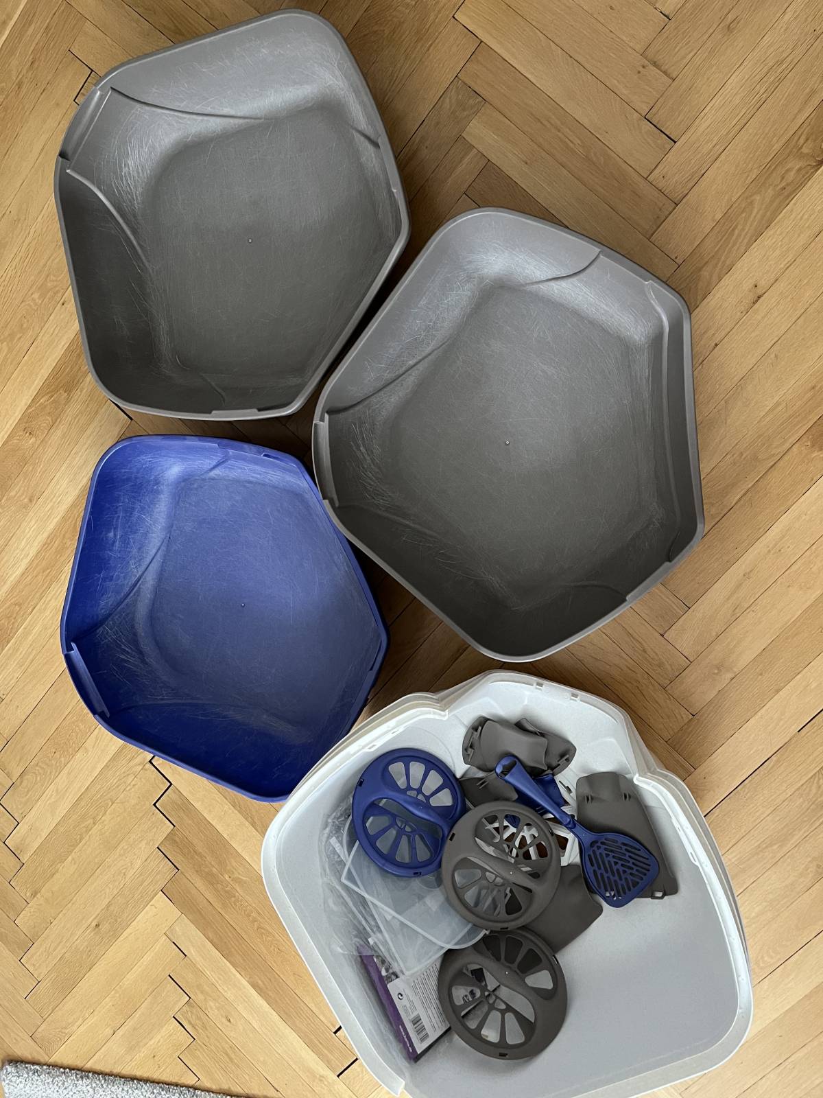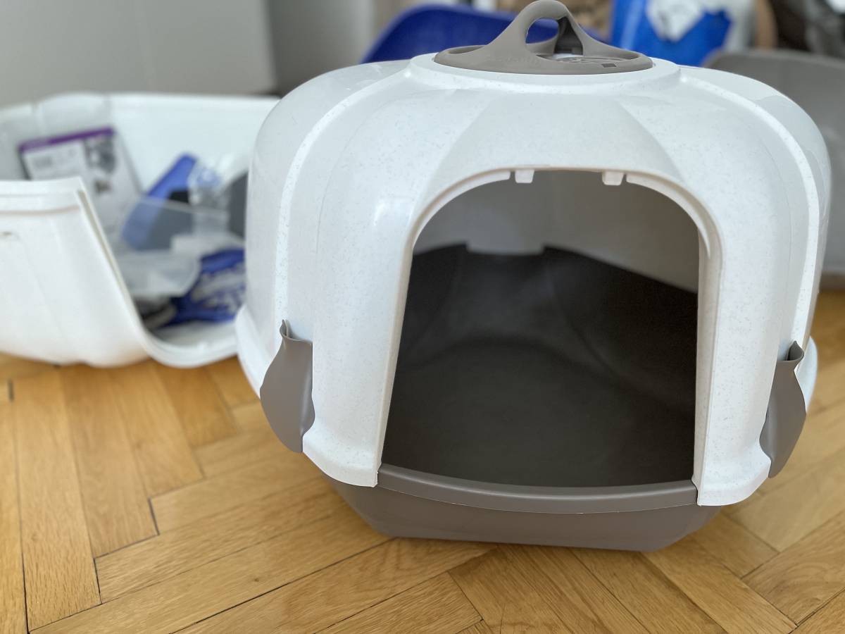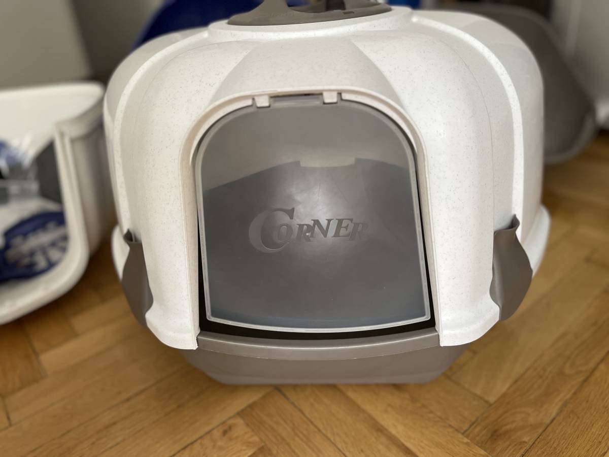 WC Mega Corner - krytá toaleta pro kočky, používané, bez vad. Celkem 3 kusy, barva 2x šedá a 1x modrá. Rozměry: 52 x 59,5 x 44,5cm. Museli jsme změnit za otevřené kvůli stáří kočičky. Pouze osobní odběr Praha 2, kousek od Karlova náměstí. Odepisuji pouze vybraným zájemcům. Děkuji