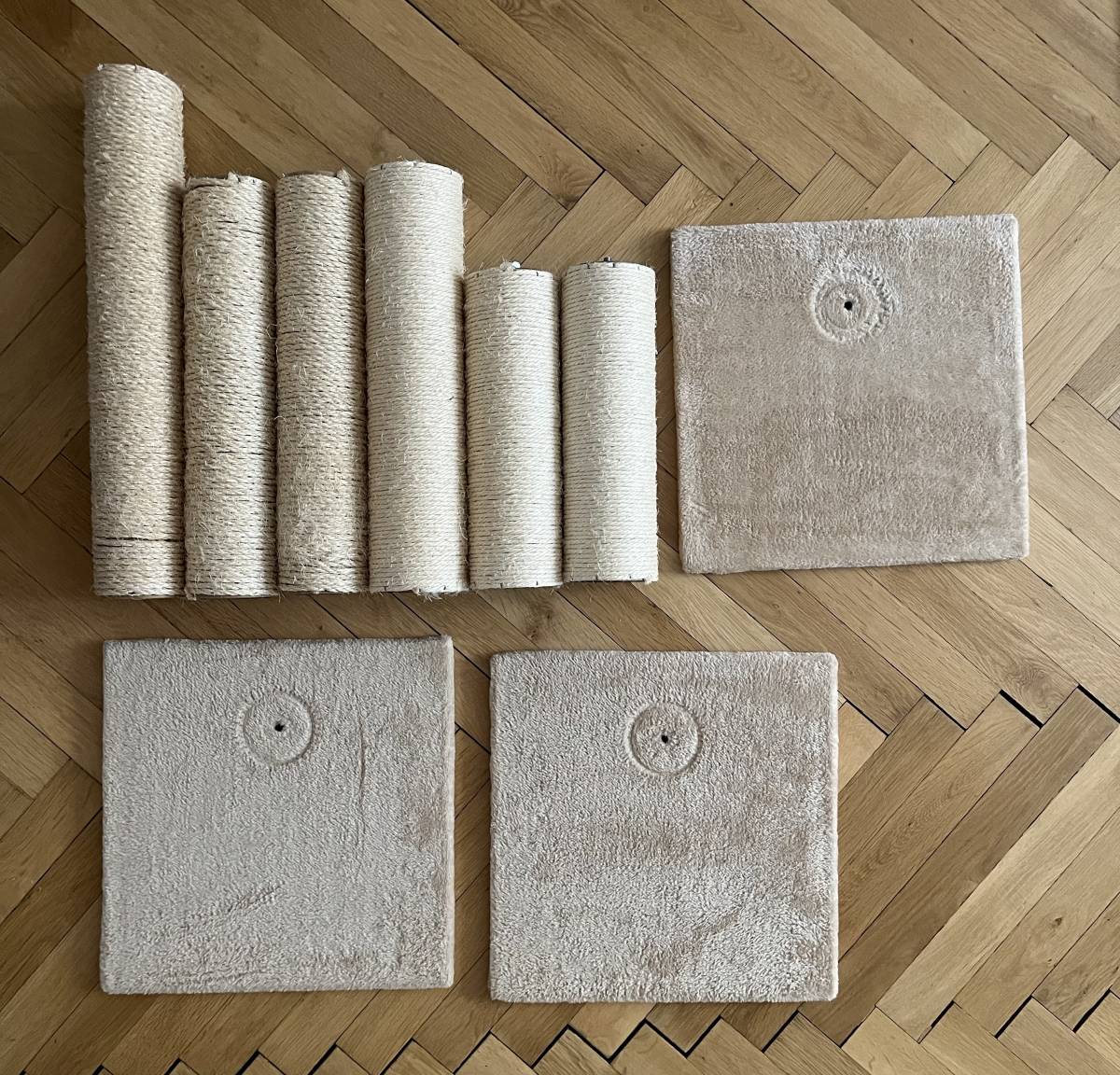 3x plošina 35x35 cm. Celkem 6 škrábacích sloupků o výškách 50, 40 a 30 cm. Jeden díl k uchycení do stropu. Pouze osobní odběr Praha 2, kousek od Karlova náměstí. Odepisuji jen vybraným zájemcům. Děkuji