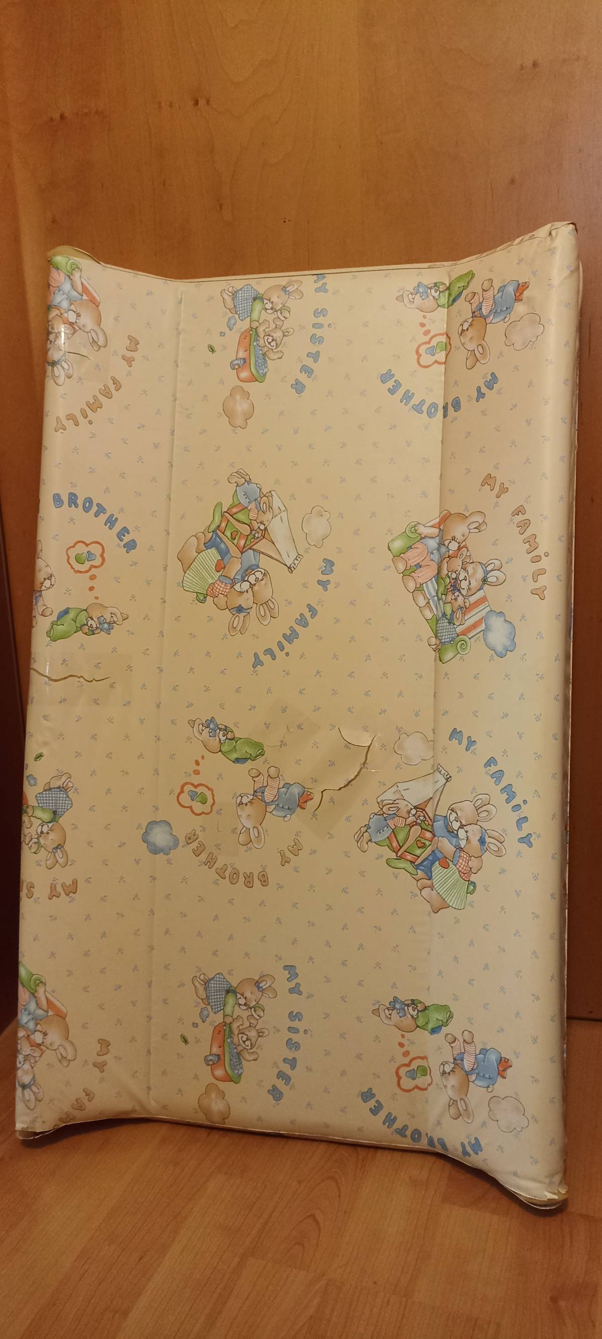 Daruji za odvoz přebalovací podložku/pult. Ideální na vanu nebo přes postýlku. Rozměry: délka 79,5 cm šířka 48 cm. V několika místech přelepeno, ale s dečkou či ručníkem nijak nevadí.