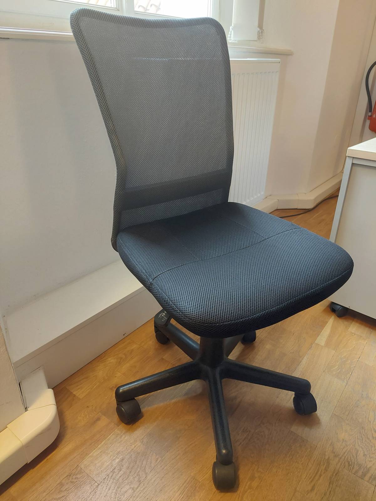 Daruji za odvoz kancelářskou židli. Materiál potahu síťovina, nastavitelná výška, bez područky, bederní opěrka. Použitá, v dobrém stavu.
