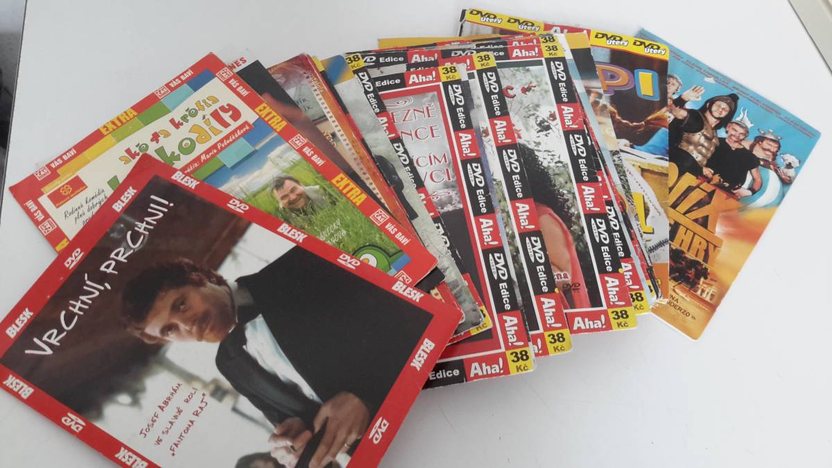 23 kusů použitých DVD v papírových pošetkách s různými filmy.