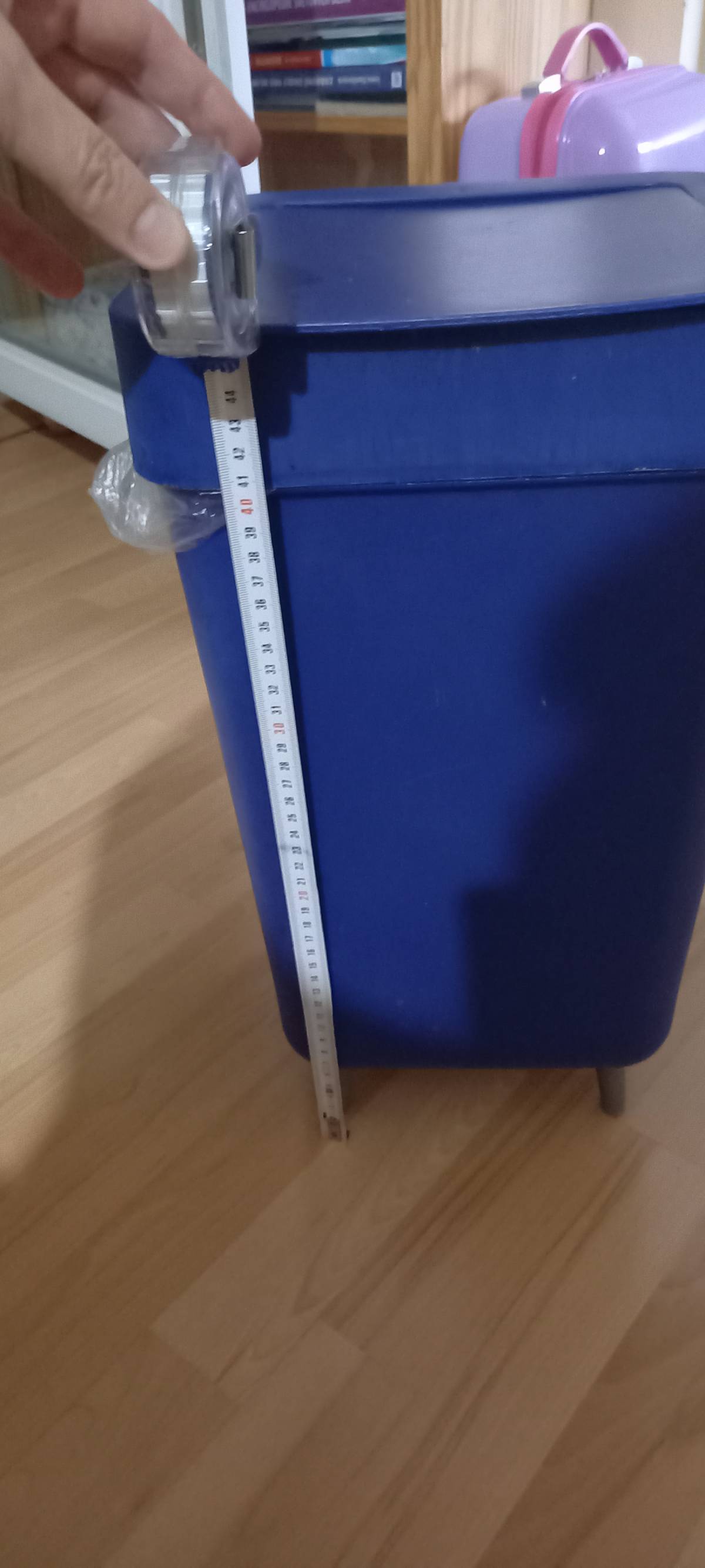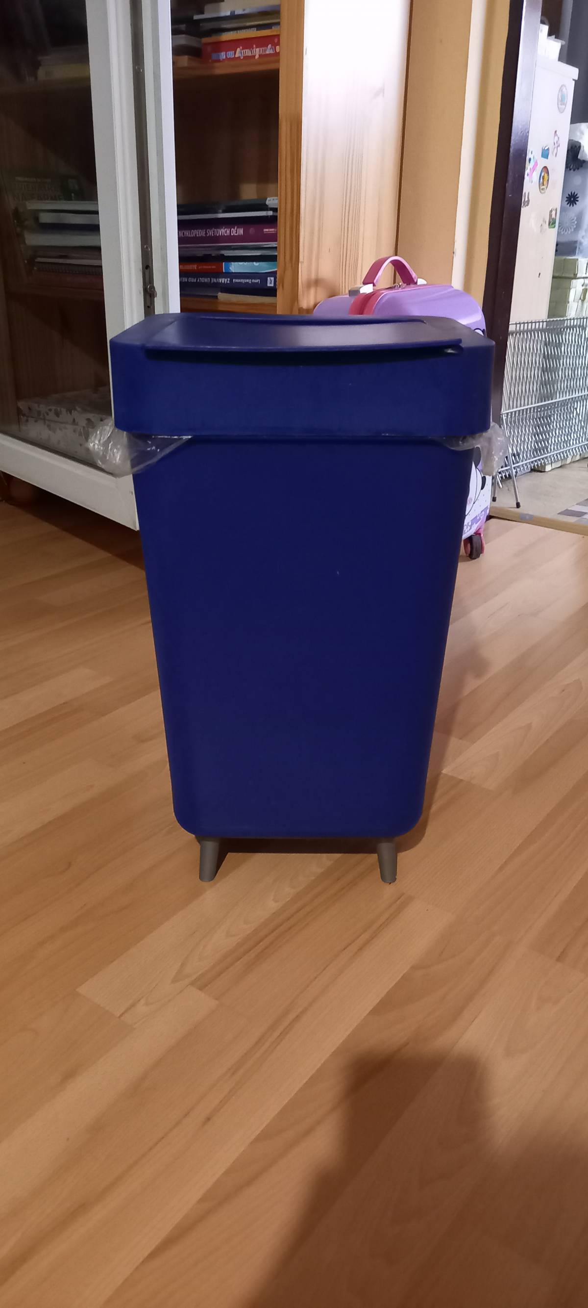 Použitý, tmavě modrý, koš s výškou 46cm.