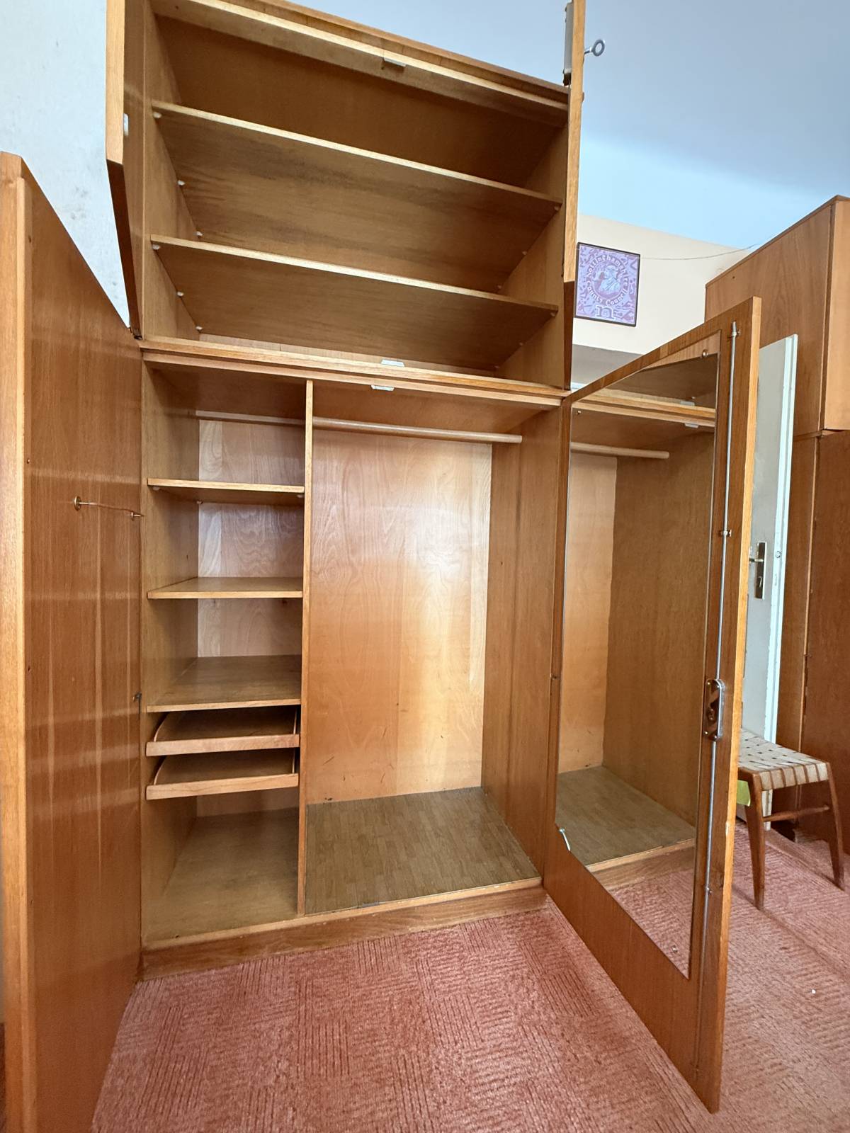 Daruji za odvoz dvě vysoké šatní skříně. Jsou dobře udržované. Vrchní díl má poličky, spodní díl tyč na ramínka na jedné straně a poličky a šuplíky na straně druhé. Jedna ze skříní má ve dveřích i zrcadlo. Vyzvednutí je možné každé úterý. Po domluvě by to šlo i jindy. Prosím pokud máte zájem napište mi váš časový odhad. Nábytek je v ulici Marie Cibulkové v Praze v Nuslích.
