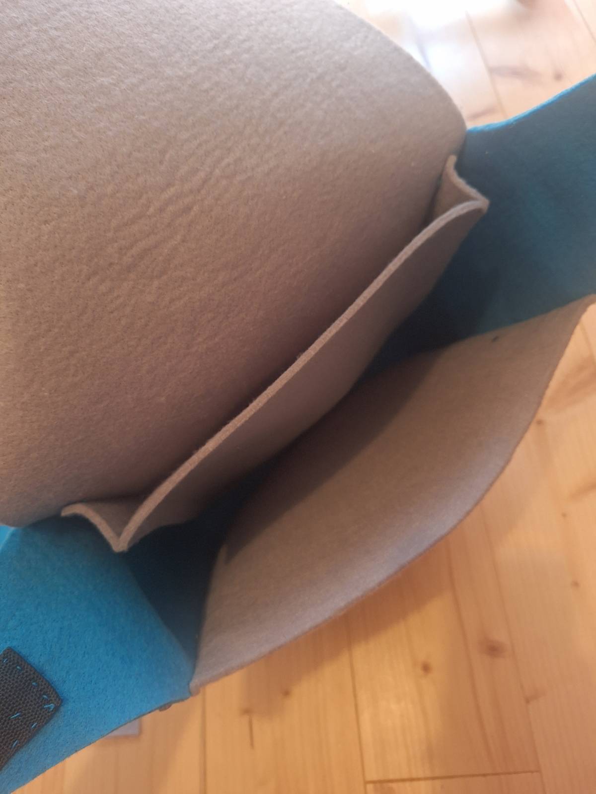 Kdysi davno zacata taska z tlusteho filcu. Mozna by mohlo nekoho bavit ji dodelat? Zaklad je, chybi dosit popruh. Rozmery cca 27x30x11 cm.