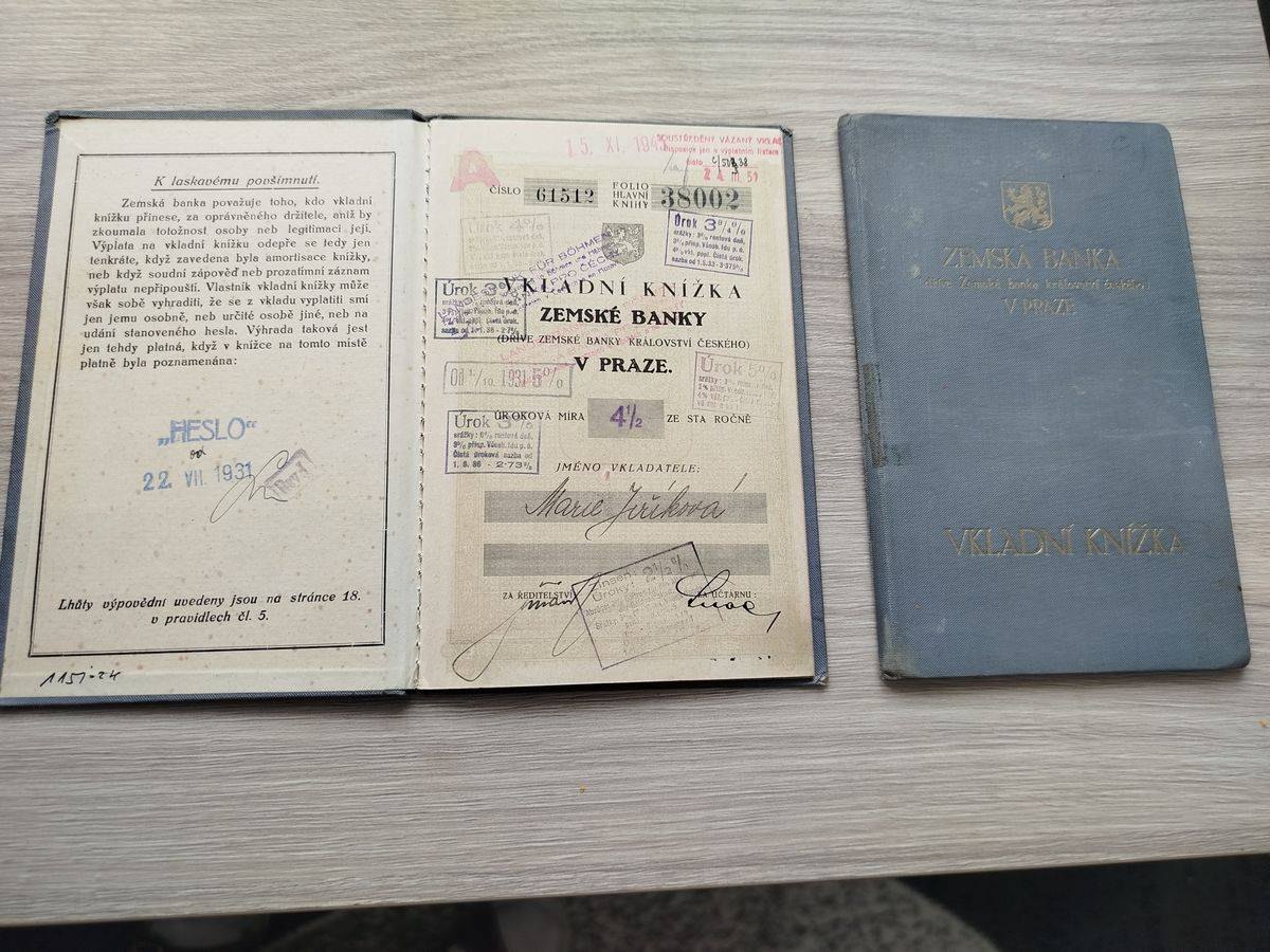 Daruji za odvoz sběrateli dvě vkladní knížky mých prarodičů (Zemská banka v Praze) z roku 1931
