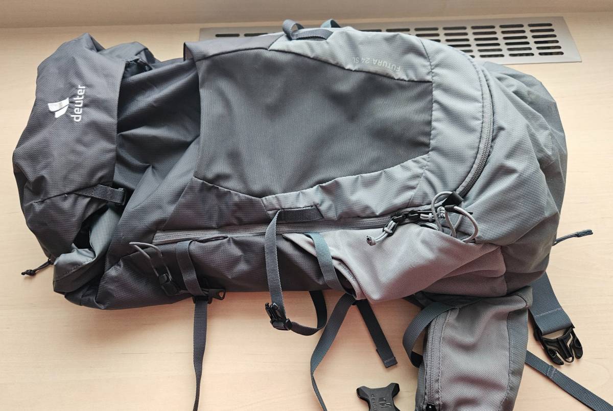 Deuter Futura 24 SL graphite-shale. Měla jsem ho na túře jednou, vidím dvě šmouhy, které půjdou odstranit. Poškození žádné. Je dámský a na mě moc úzký v zádech.