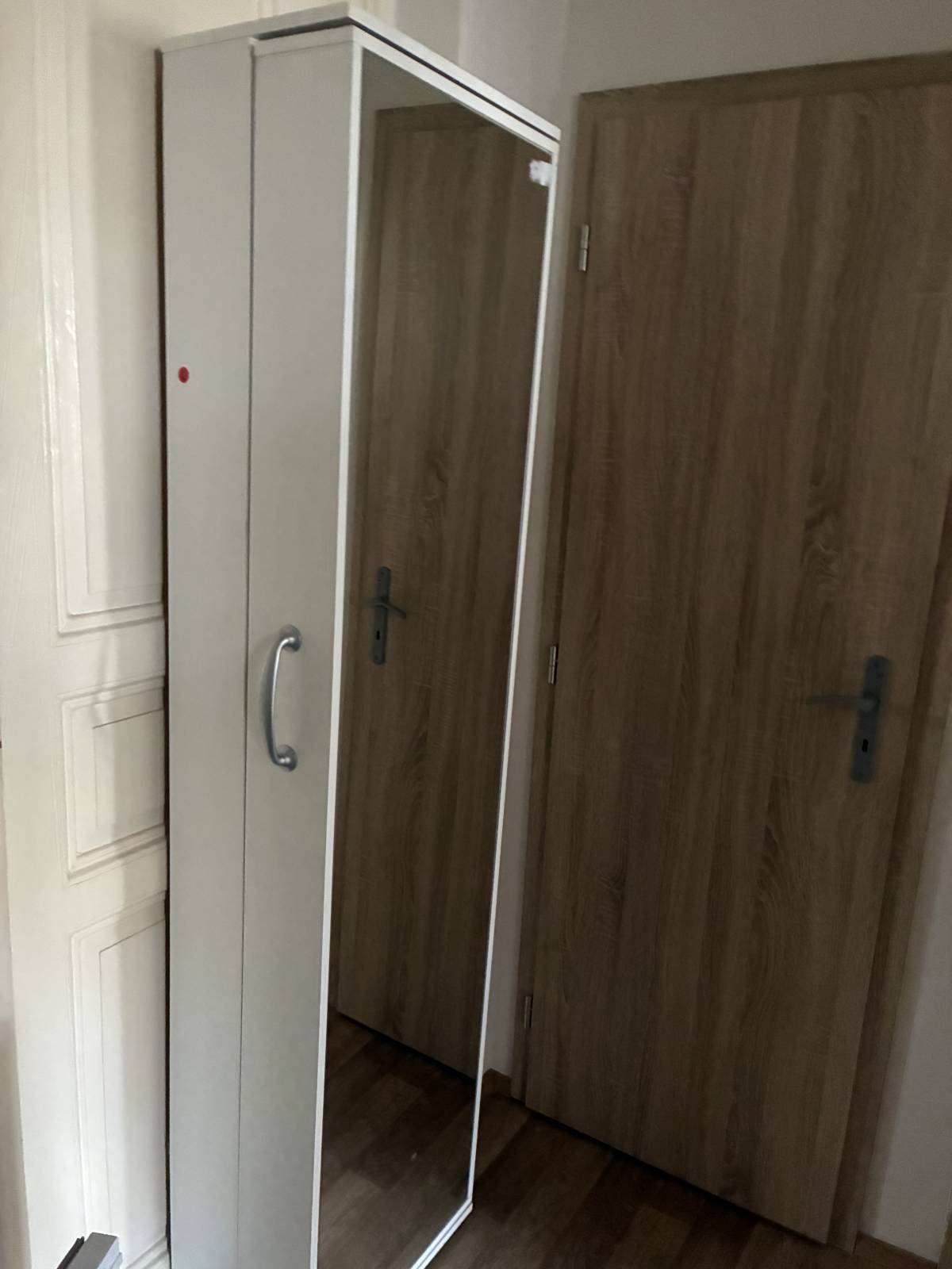 Daruji za odvoz botník vysoký, úzký, bílé lamino, ve předu zrcadlo.