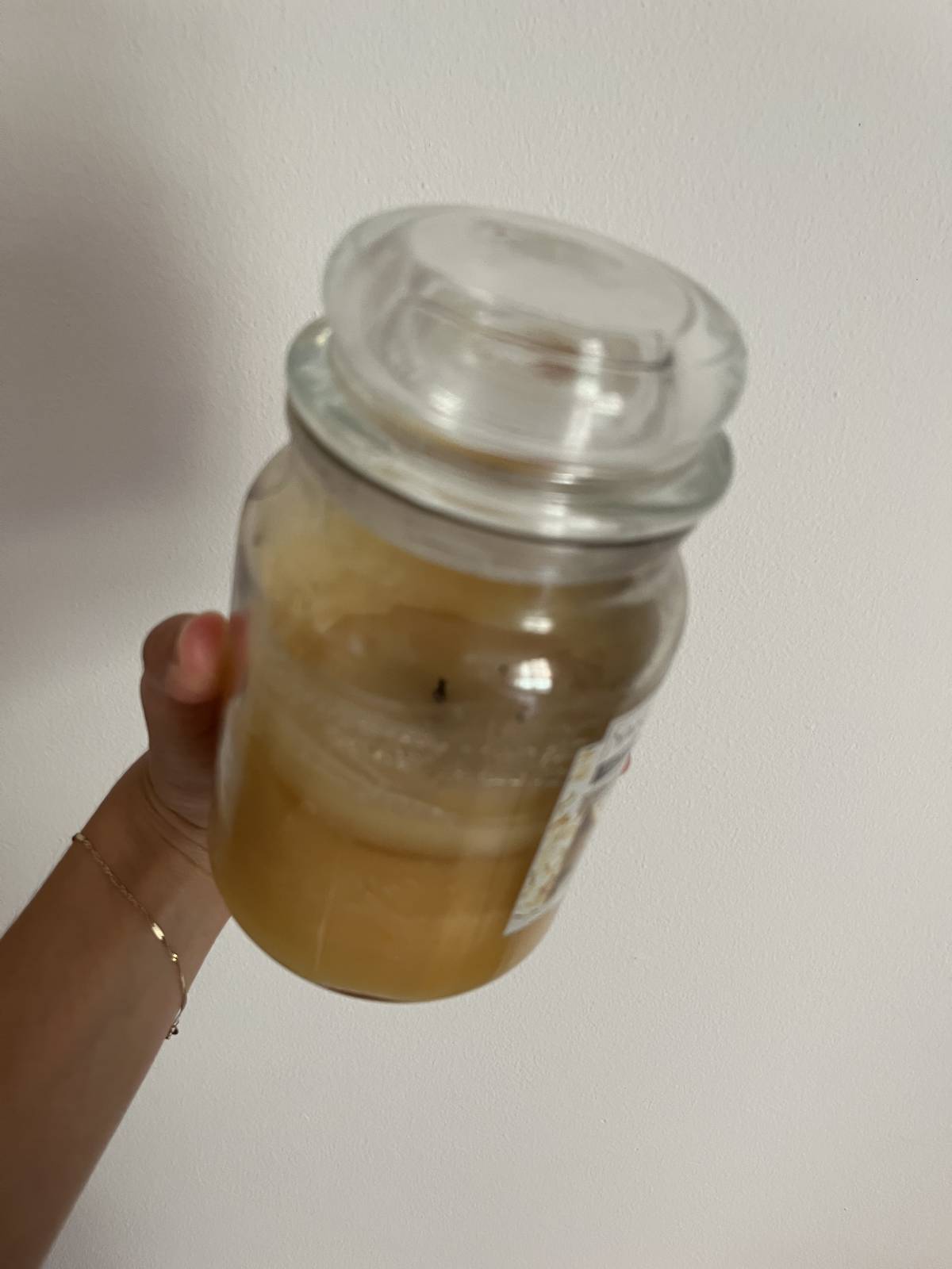 Daruji za odvoz velkou (538 g) svicku Yankee Candle, je z poloviny vypalena. Vune Vanilla Almond Frosting.