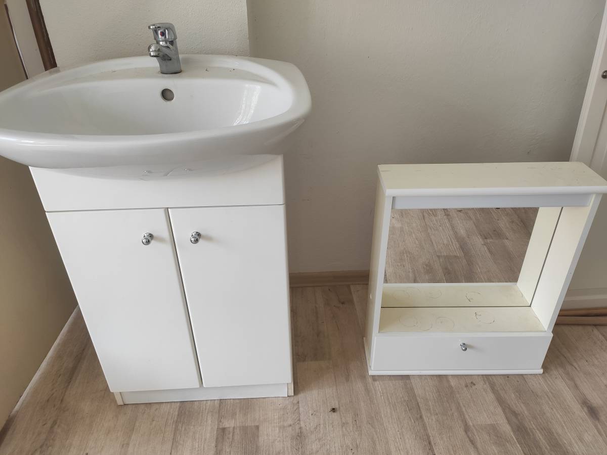 Daruji za odvoz umyvadlo + spodní koupelnová skříň, a zrcadlo s úložným prostorem.