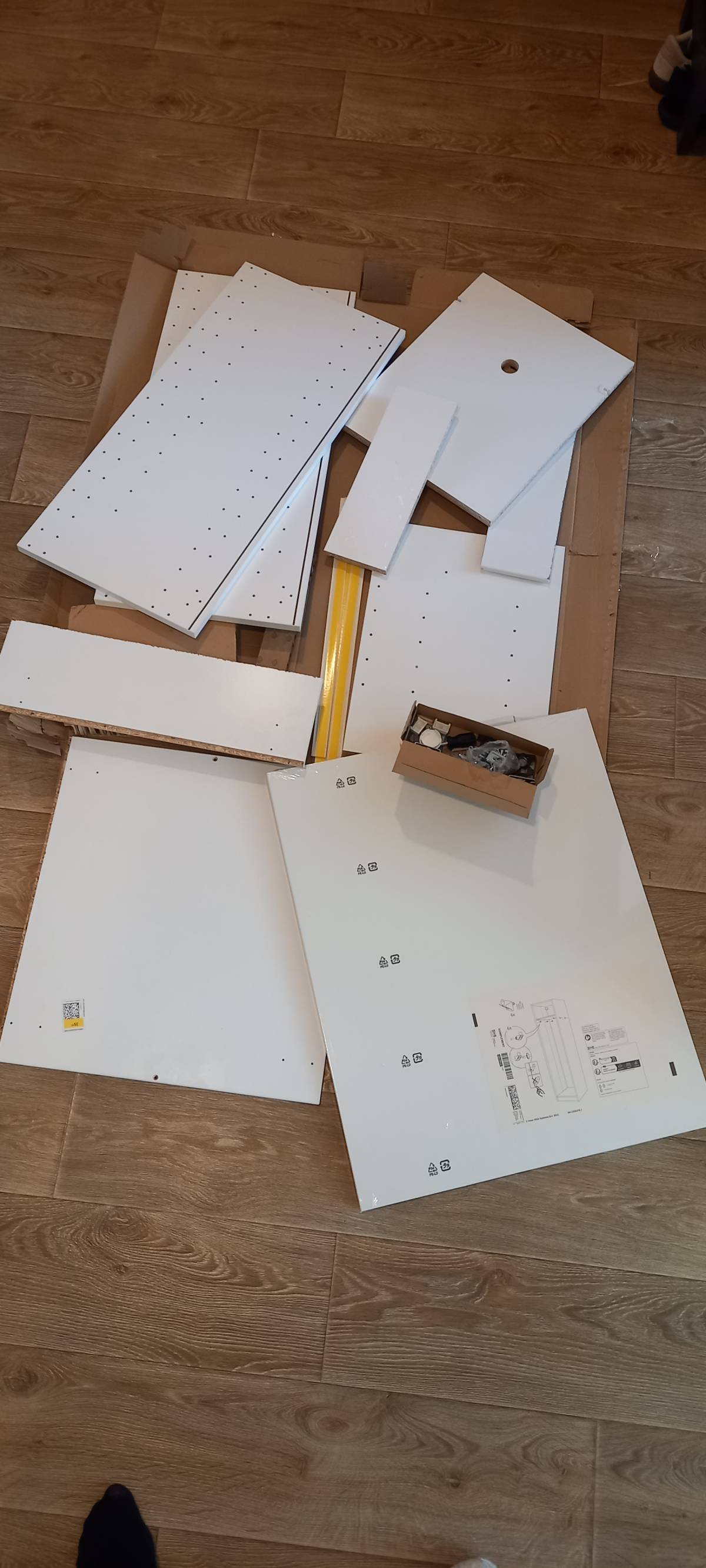 Daruji za odvoz náhradní díly na skříňky + nějaké šroubky k tomu. Je to celkem 9 bílých desek různých rozměrů, některé ještě v původním obalu.