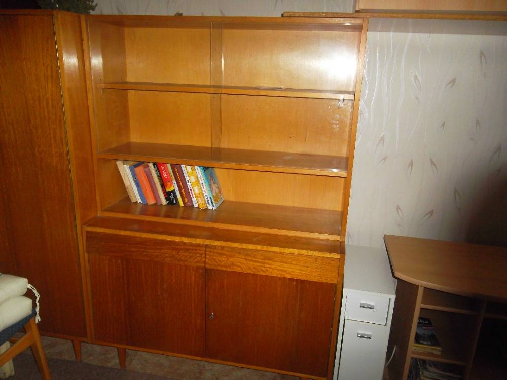 Daruji za odvoz knihovnu nahoře zasklené police , dole 2 šuplíky a uzamykatelná dvoudveřová skříňka.