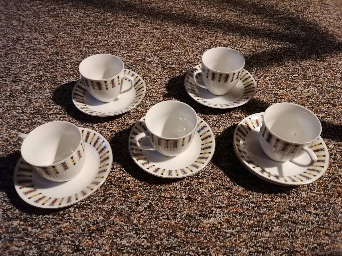 Daruji za odvoz, 5 hrníčků a 6 podšálků. Hrníčky jsou používané, občas někde naťuklé a lehce odštíplé. Poděbrady nebo Praha