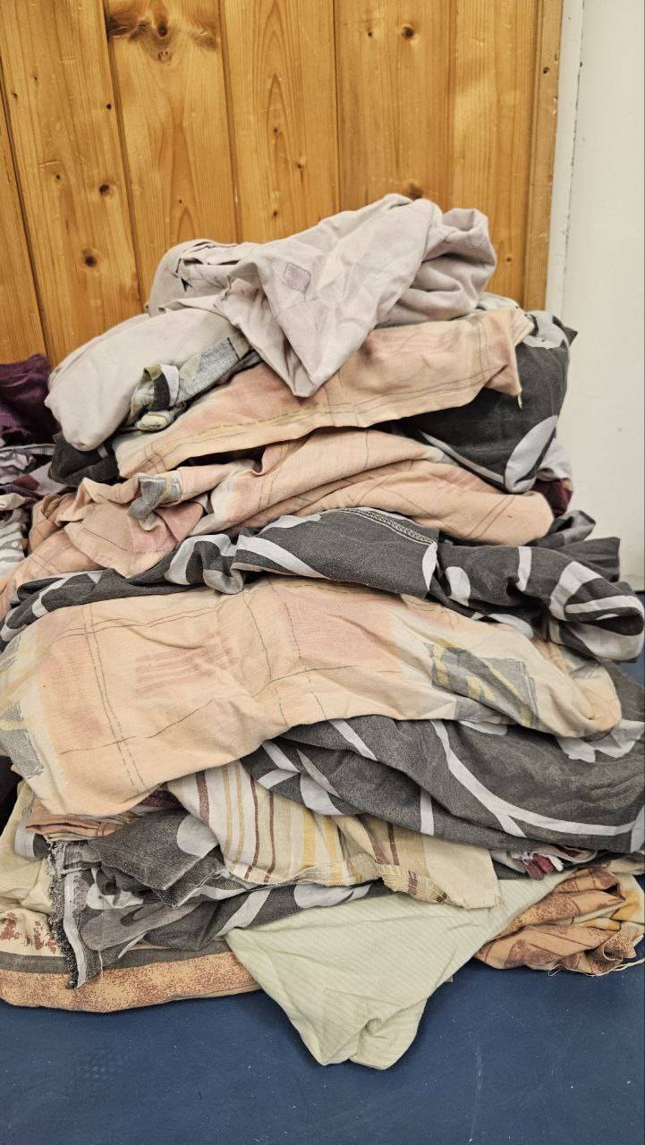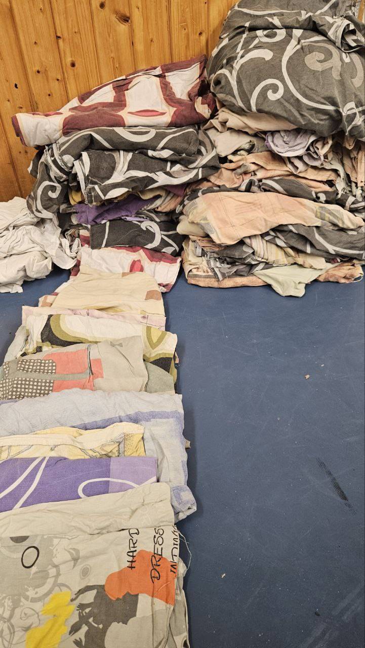 Máme k dispozici cca 100 kusů párů povlečení na peřiny a polštáře (100% bavlna).