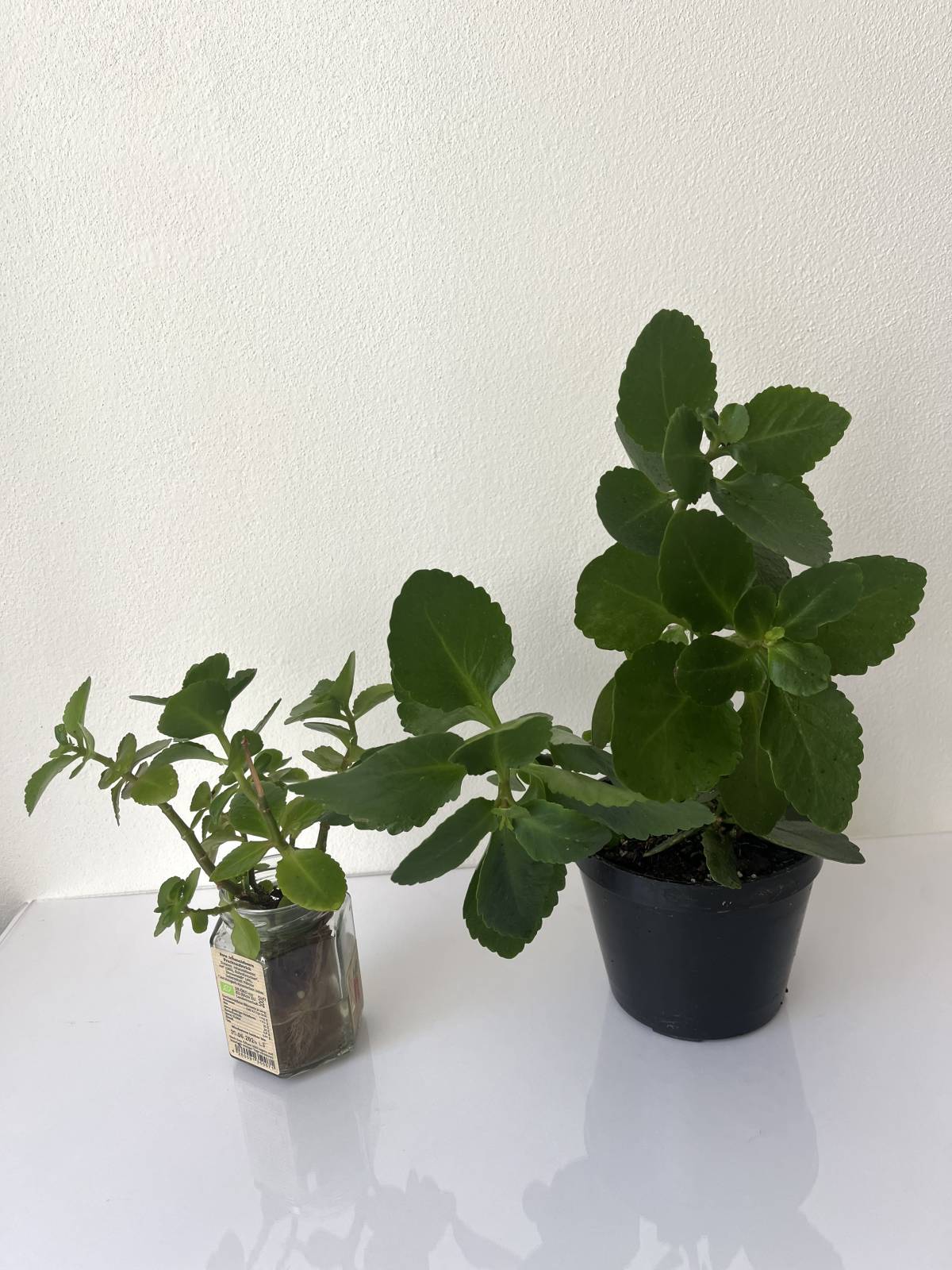 Větší má červená kvítka a zezadu odříznutý jeden stonek (viz druhé foto), menší u ní má bílá kvítka.