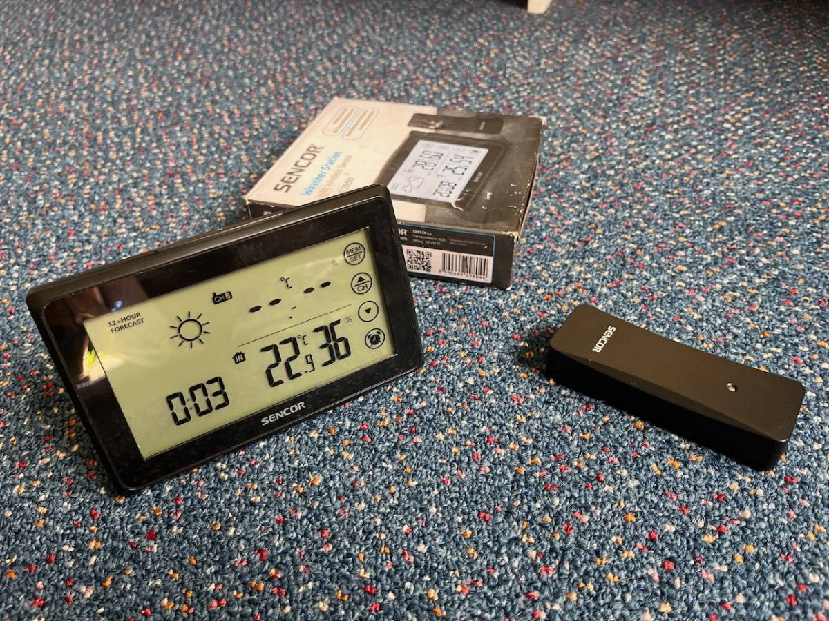 Daruji za odvoz meteostanici Sencor. Funguje, ukazuje čas, vnitřní teplotu a vlhkost. Má i vnější senzor (např. za okno), ale ten nefunguje, jde myslím dokoupit. Je trochu poškrábaná, ale jinak bez problému. Bez baterií.