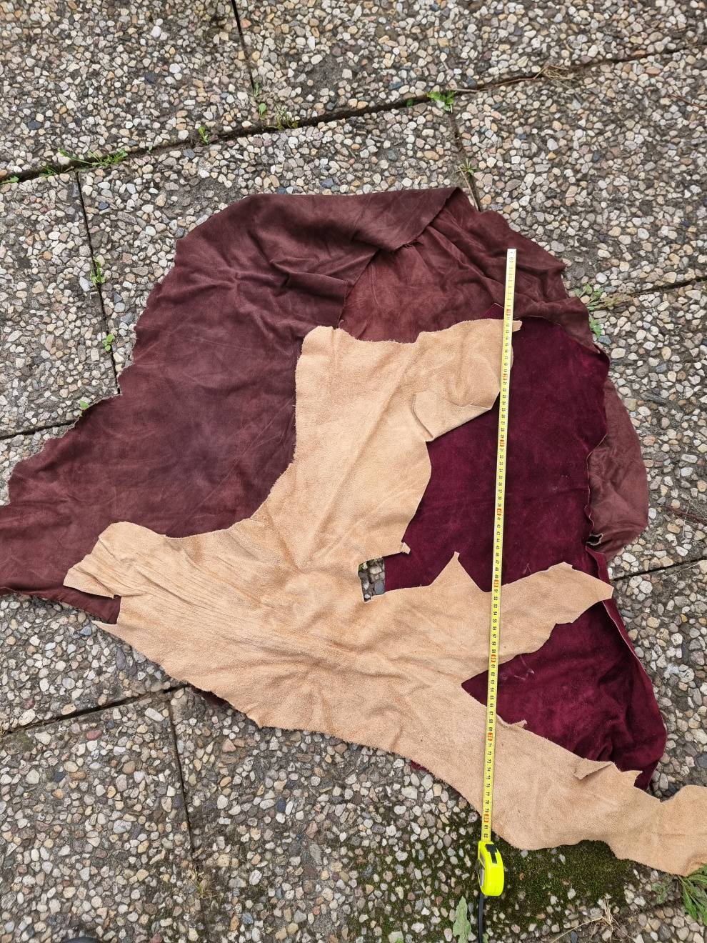 Semišové odstřižky různé velikosti - barva tmavě hnědá nebo bordočervená. K dispozici několik kilogramů. Daruji za odvoz
