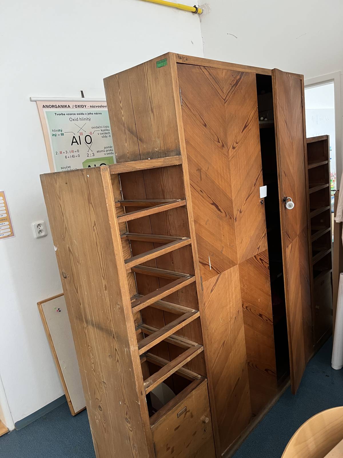 Daruji za odvoz skříň ze školní. Chemické laboratoře, je mírně cítit - Voní jako lékárna. Je funkční, ale má drobná poškození. Ideální do dílny.