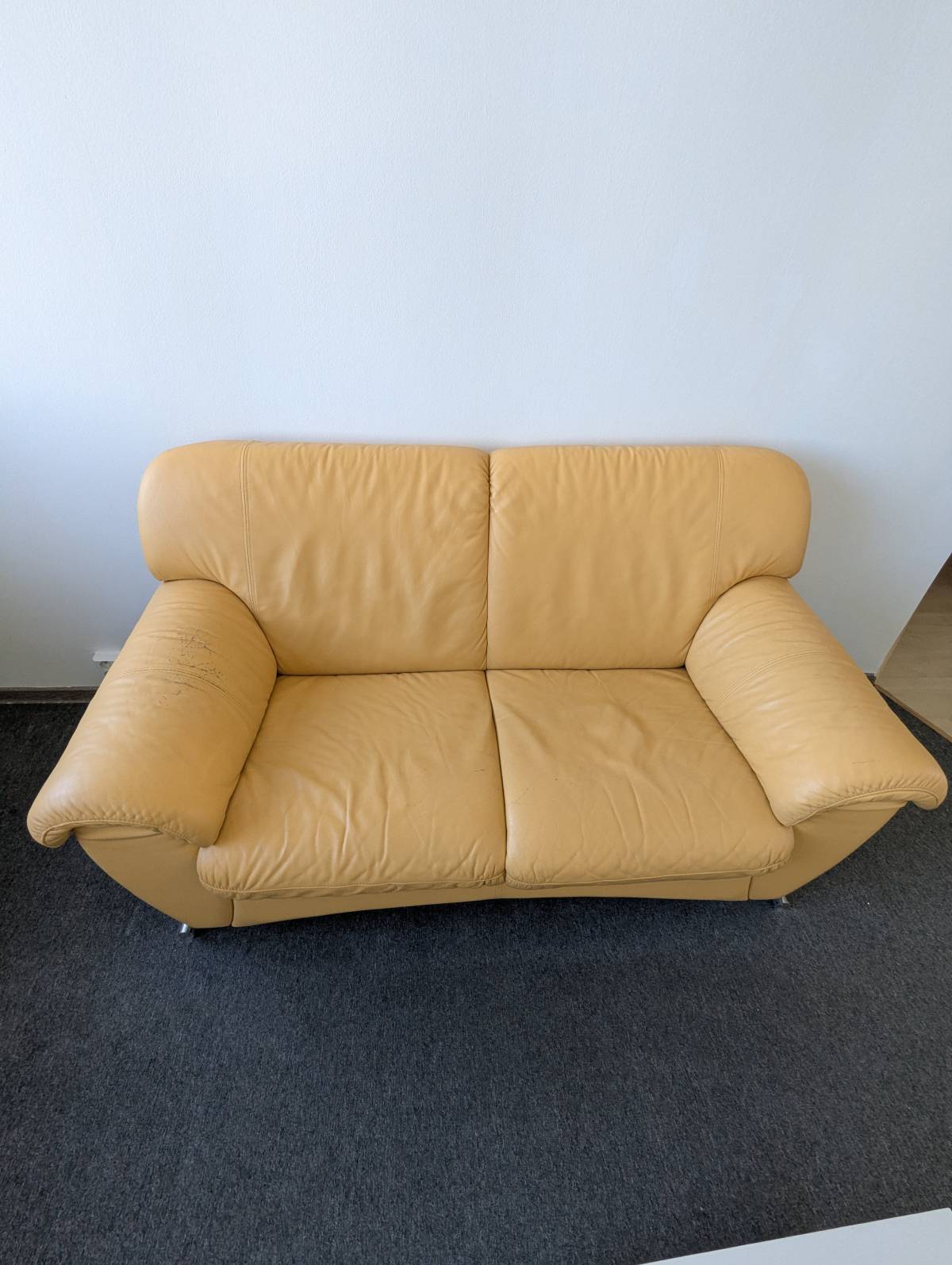 Daruji za odvoz dvoumístný kožený gauč, opěrky už popraskané, ale stále poslouží
