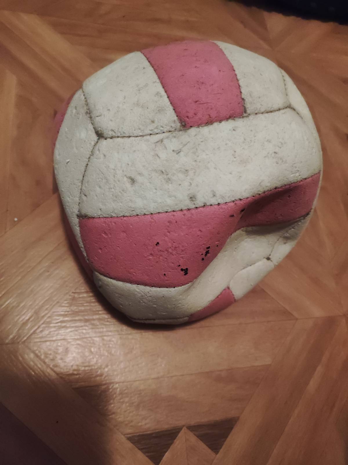 Daruji za odvoz starší volejbalový míč. Chvíli vydrží nafouknutý, ale postupně někde uchází. Napadlo nás, že by možná mohl ještě posloužit na hraní nějakému pejskovi (nebo na jakékoliv jiné vyžití).