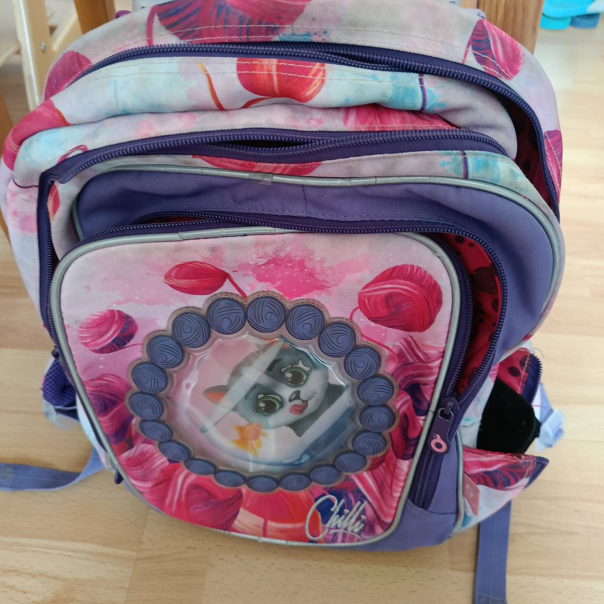Daruji za odvoz aktovku. Byla pouzivana, je to na ni videt, ale pro nenarocne jeste poslouzi. Ma vymenovaci obrazky kocicky, 3 komory.