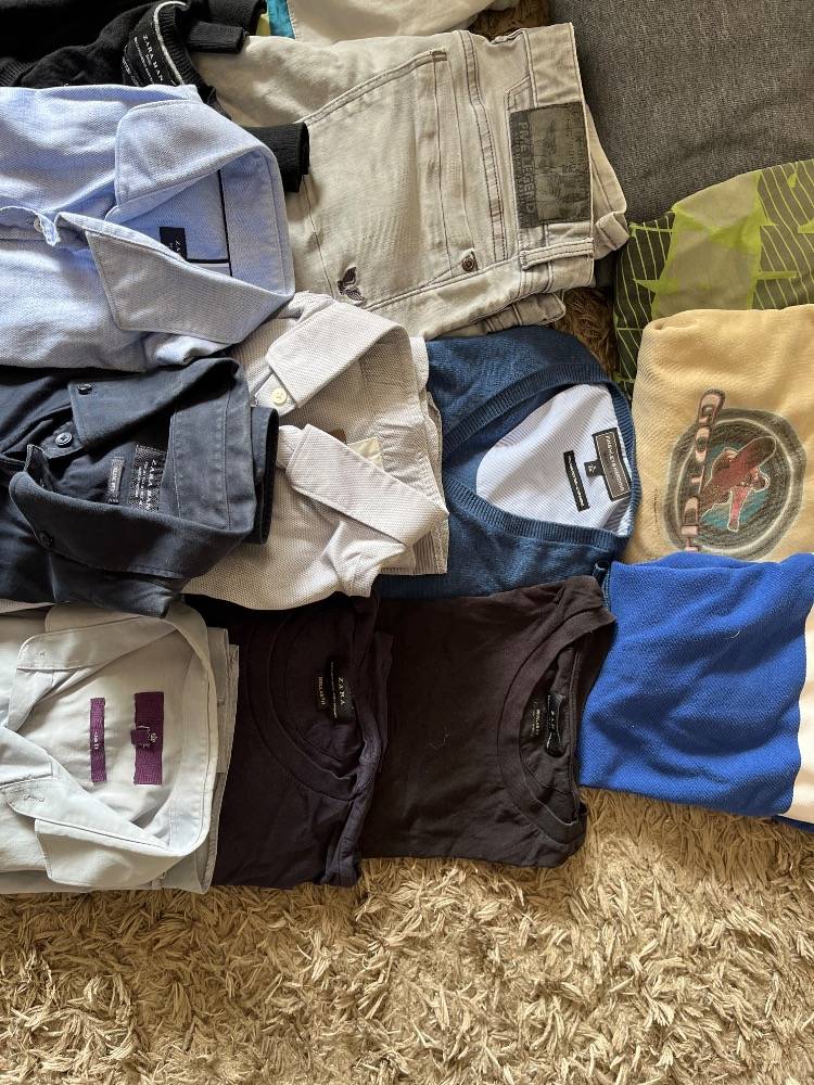 Daruji za odvoz panské oblečení. Svetry zara (kašmír, vel m) a finshley a harding (vel s), košile zara (vel 48), džíny pme legend (32/32), mikiny, mnoho triček vel m (nove sparta, kingsley hard, dárek pro Putina, zbývající spíše na zahradu/na doma