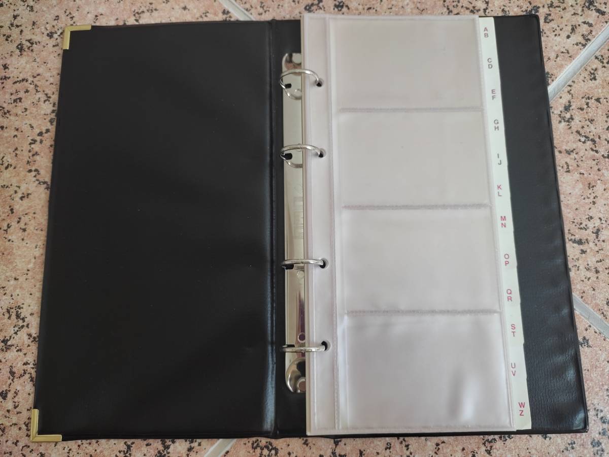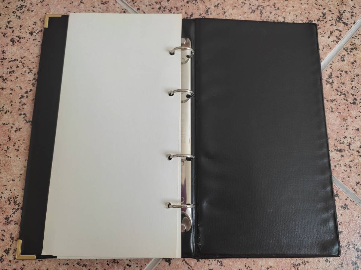 Čtyřkroužková mechanika. Možnost doplňování jednotlivých listů. Velikost cca: 14 x 25 cm.
